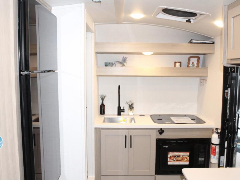 This small but mighty trailer includes a 20,000 BTU furnace and 12V thermostat-controlled heated holding tanks, keeping you cozy no matter the weather. Want to go off-grid? It’s prepped and ready with solar options and efficient systems to extend your time outdoors.