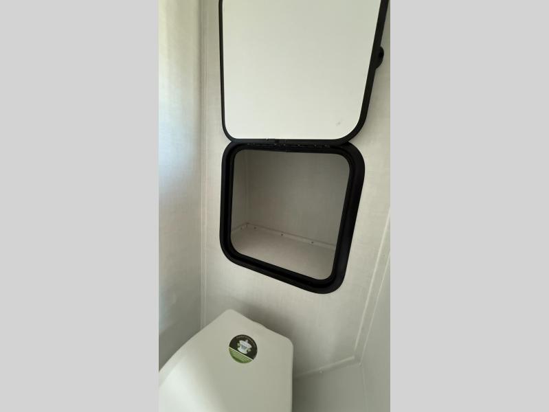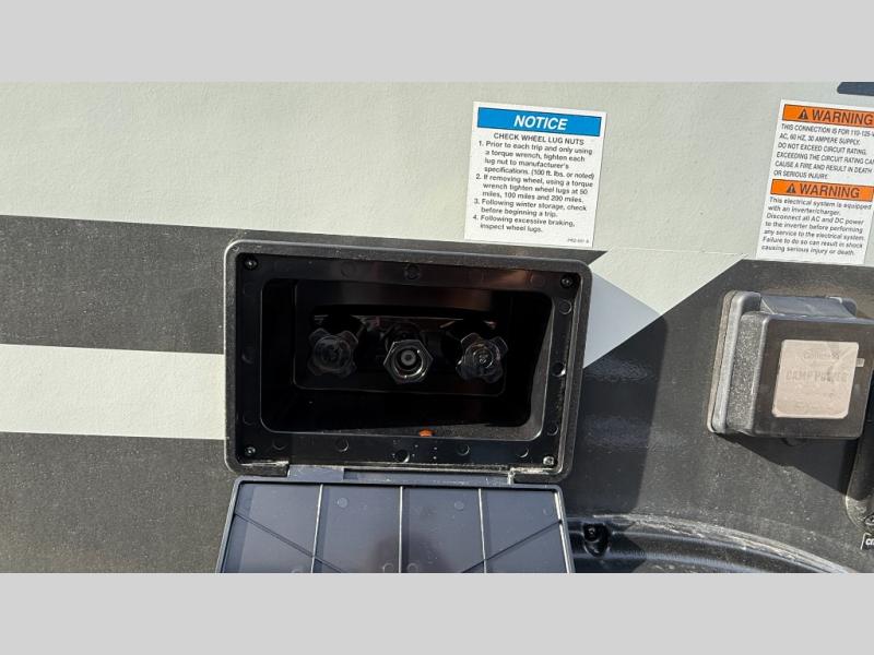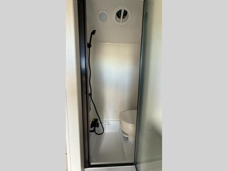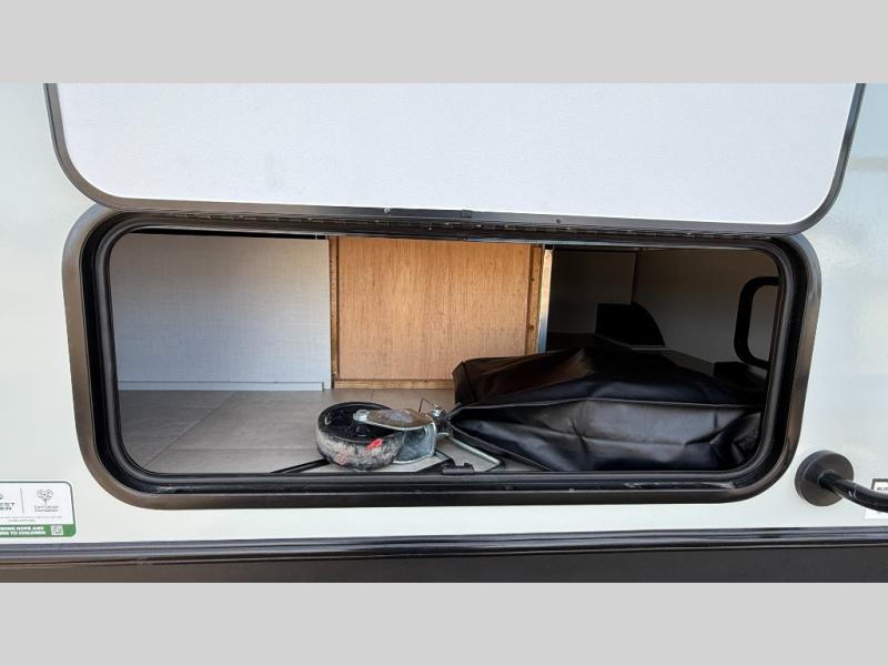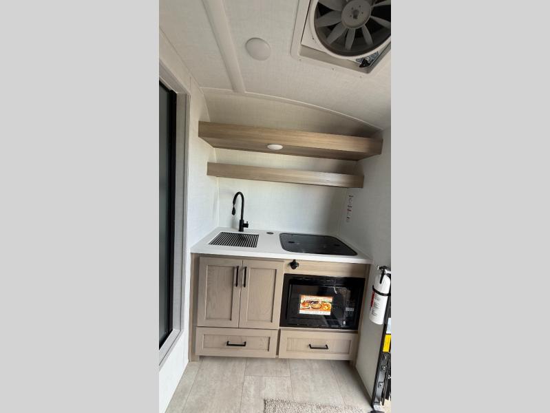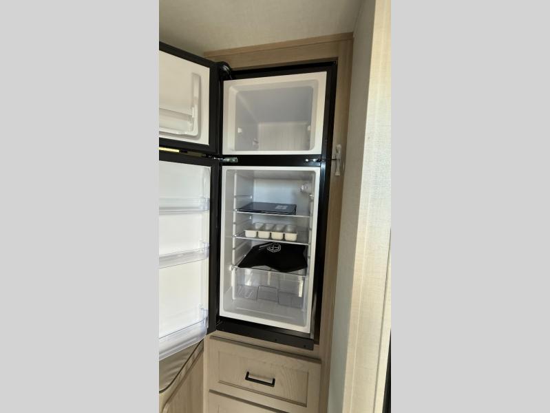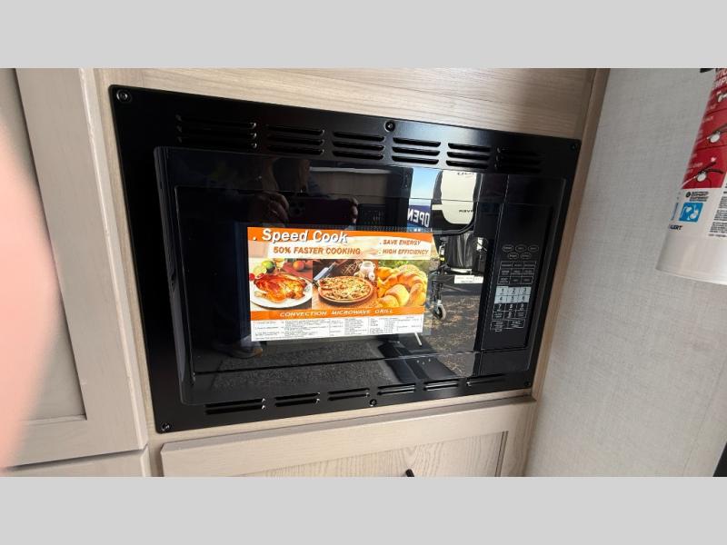It won't be hard to find comfort in this travel trailer. It may be smaller on size, but it doesn't skim on features. The twin beds convert to a king-size bed for your comfort, and there is even a 32" 12V TV to enjoy in the evenings. The kitchen includes a three burner cooktop, a convection microwave, plus a 12V refrigerator for perishables. You'll find overhead compartments for your valuables and exterior storage for your hiking gear!