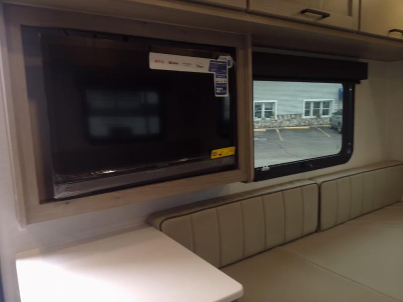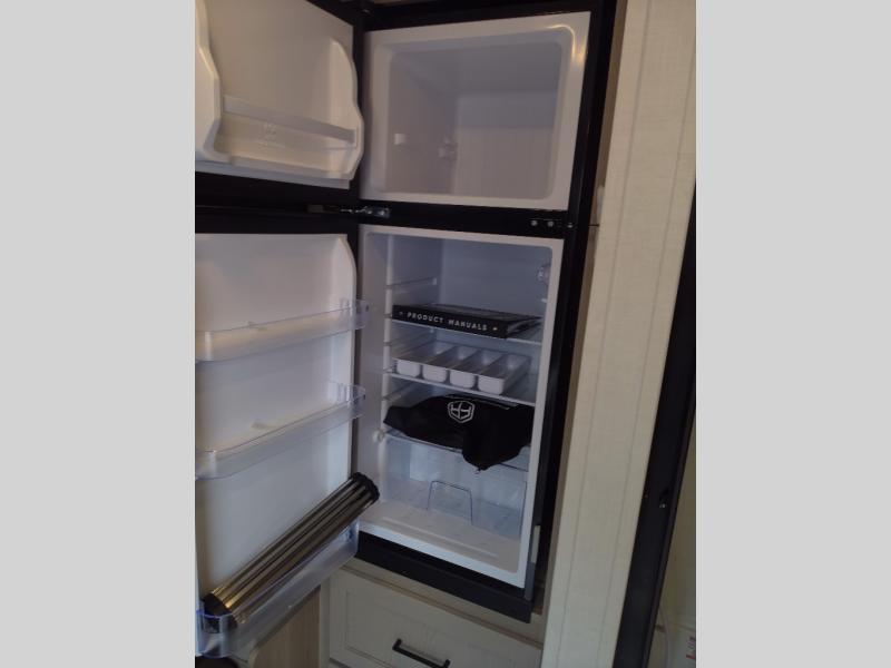 It won't be hard to find comfort in this travel trailer. It may be smaller on size, but it doesn't skim on features. The twin beds convert to a king-size bed for your comfort, and there is even a 32" 12V TV to enjoy in the evenings. The kitchen includes a three burner cooktop, a convection microwave, plus a 12V refrigerator for perishables. You'll find overhead compartments for your valuables and exterior storage for your hiking gear!