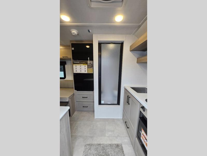 It won't be hard to find comfort in this travel trailer. It may be smaller on size, but it doesn't skim on features. The twin beds convert to a king-size bed for your comfort, and there is even a 12V TV to enjoy in the evenings. The kitchen includes a three burner cooktop, a convection microwave, plus a 12V refrigerator for perishables. You'll find overhead compartments for your valuables and exterior storage for your hiking gear!