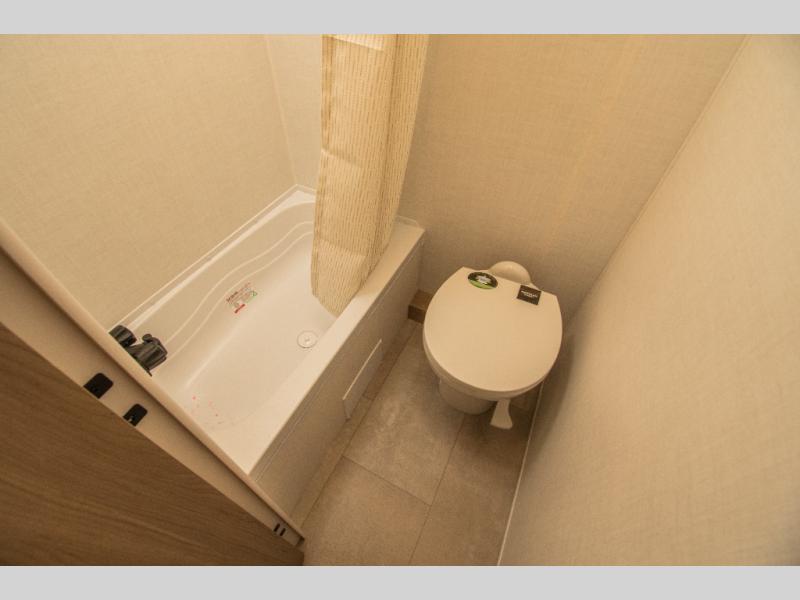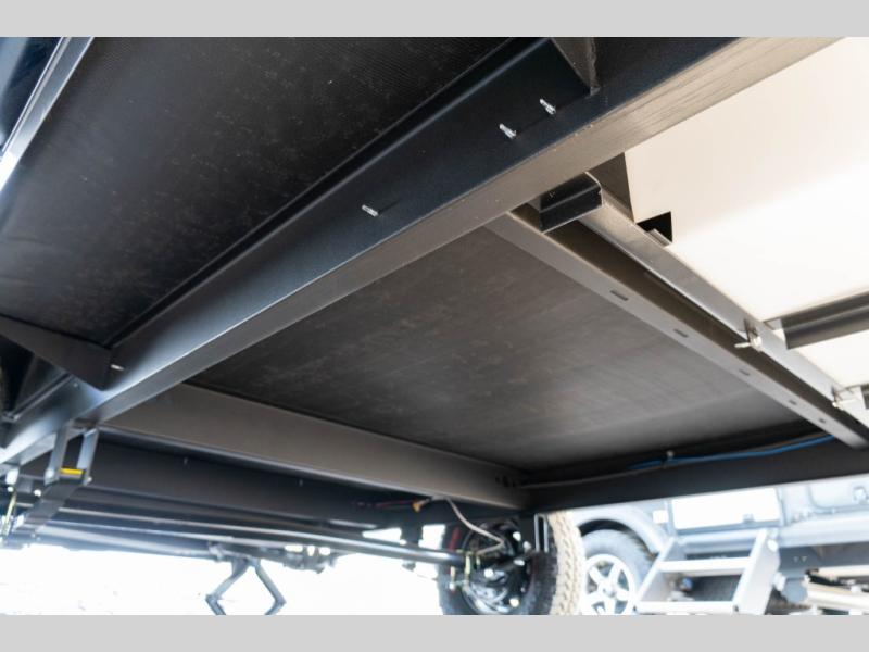 In the rear of the trailer, 30" x 74" double bunks provide additional sleeping space, making it easy to bring kids or guests along. A rear corner bathroom with a shower and toilet adds everyday convenience, allowing you to camp comfortably without relying solely on campground facilities. Outside, the 13' awning extends your living space and creates a shaded area to relax, while exterior storage offers room for gear and essentials.