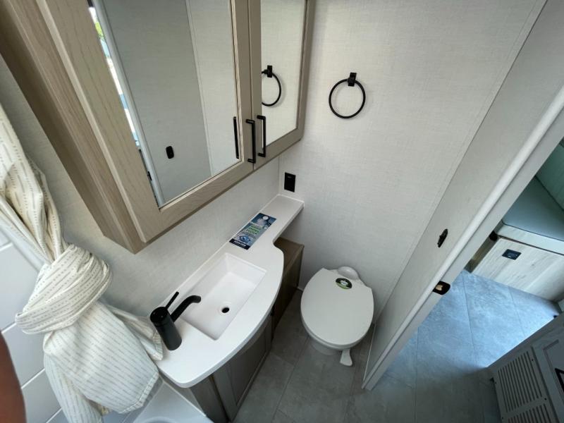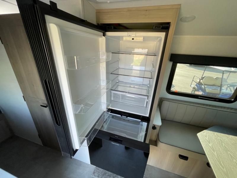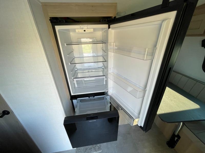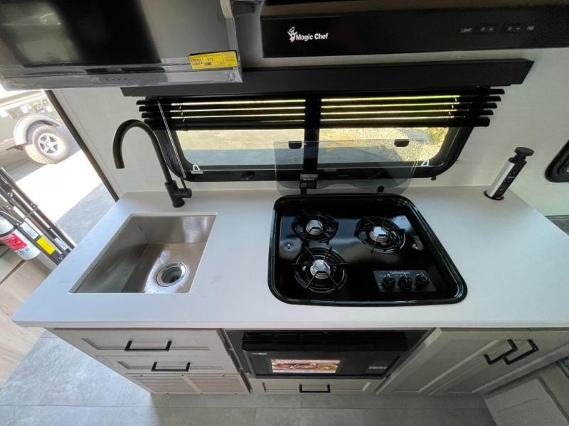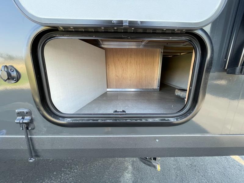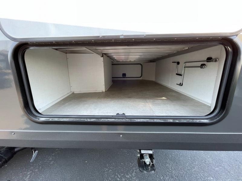 You'll love camping in this travel trailer that can sleep five each night. There is a front U-shaped dinette, a rear 54" x 74" full-size bed, plus a 26" x 80" flip-up bunk! A three burner cooktop and microwave oven let you create your best meals, and there is a 15' power awning and an exterior griddle if you want to cook outdoors. The full bath gives you privacy when freshening up after a day outdoors, and you'll find plenty of storage space in this unit, including in the overhead cabinets and the exterior pass-thru storage!