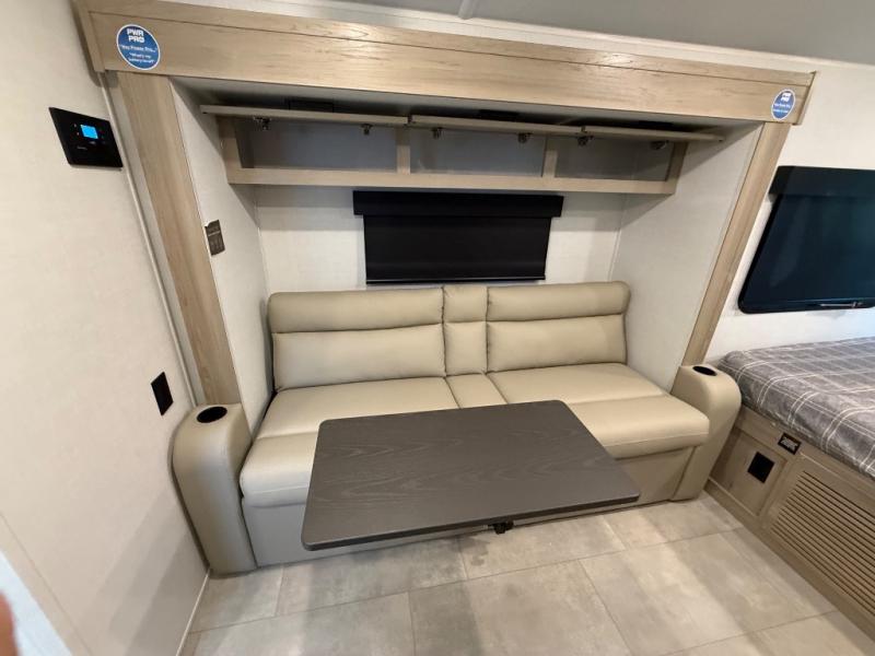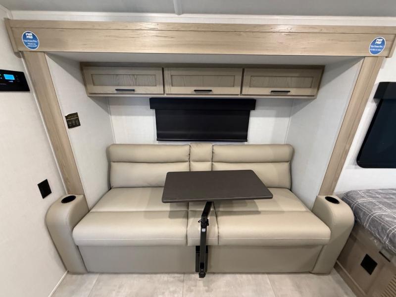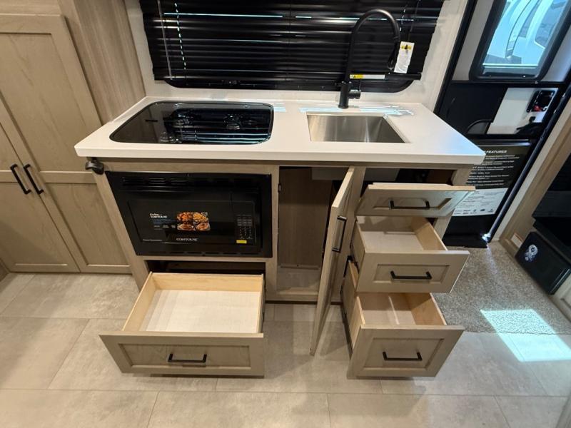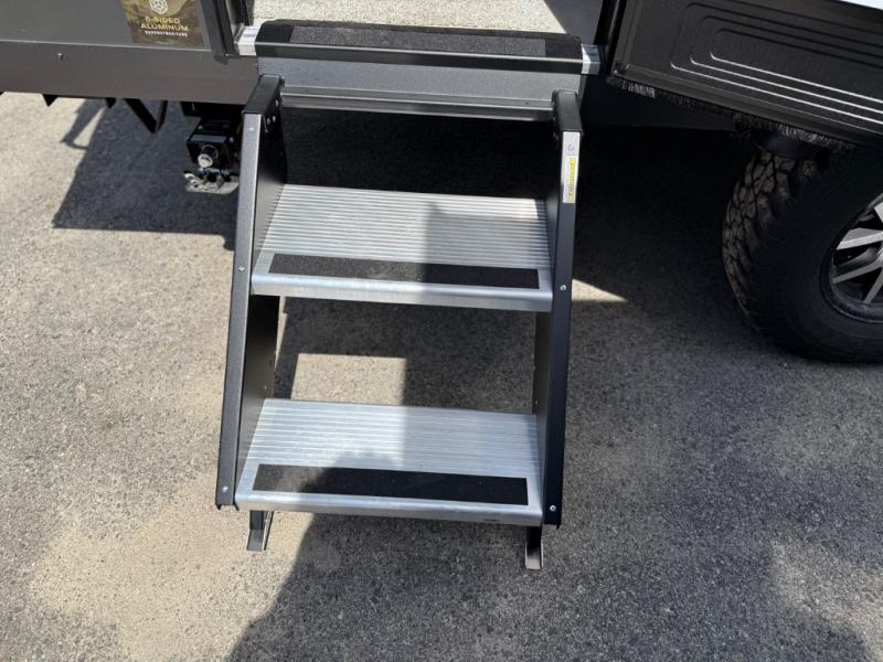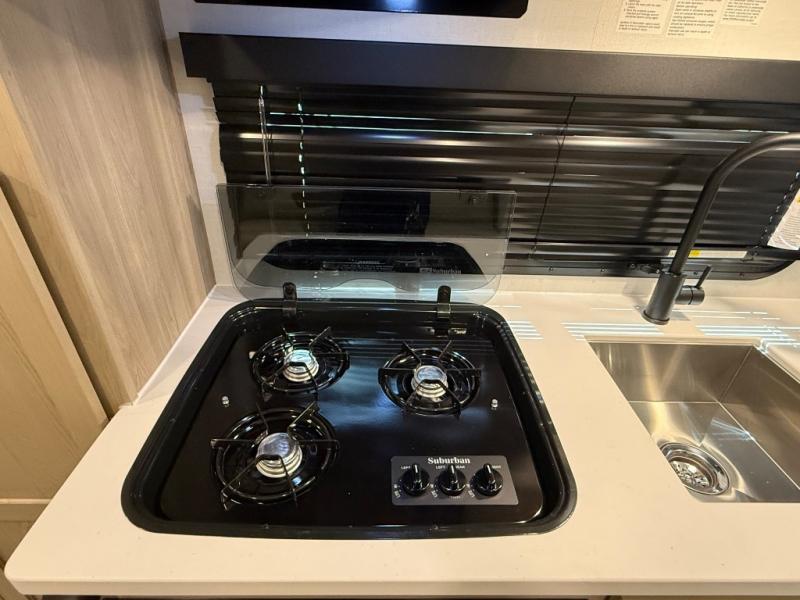 This is the perfect couple's trailer, so sneak away for a weekend in the woods. There is a 72" sofa with cupholders with a table that will be perfect for meals times and relaxing. This model includes a 32" 12V TV to keep you busy on those rainy days, and the queen bed will provide a great night's rest. This model also includes an outside griddle and an 11' power awning so you can enjoy those nice days outdoors!
