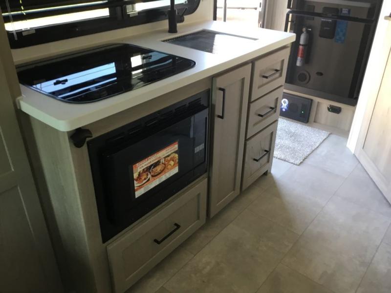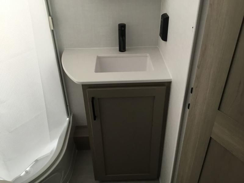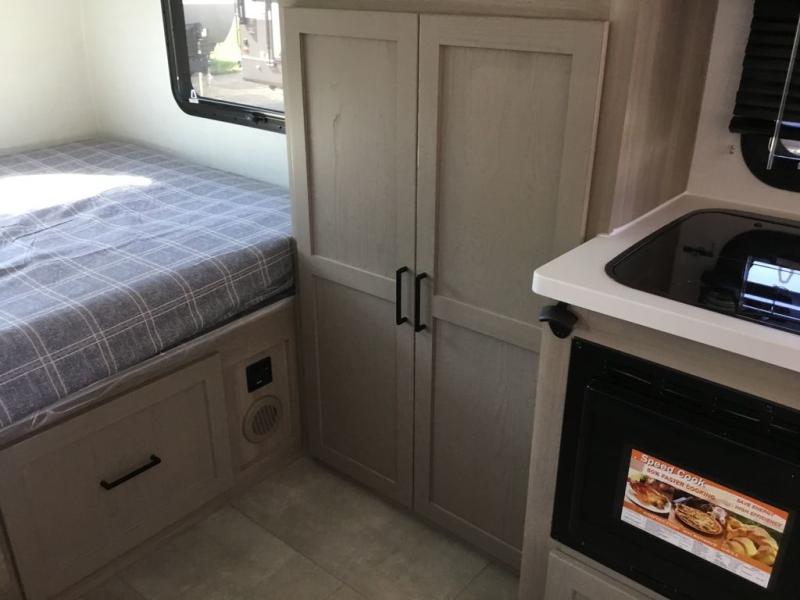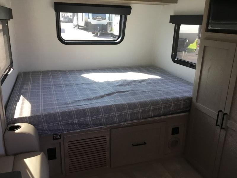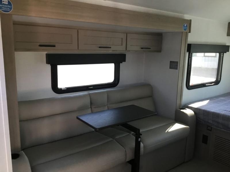 This is the perfect couple's trailer, so sneak away for a weekend in the woods. There is a 72" sofa with cupholders with a table that will be perfect for meals times and relaxing. This model includes a 12V TV to keep you busy on those rainy days, and the queen bed will provide a great night's rest. This model also include an 11' power awning so you can enjoy those nice days outdoors!