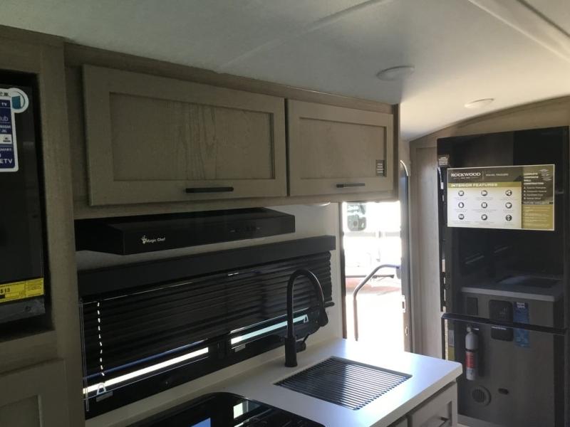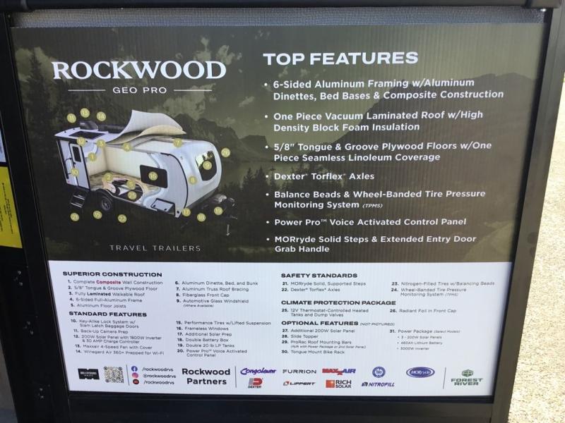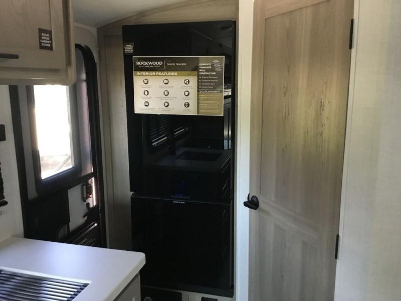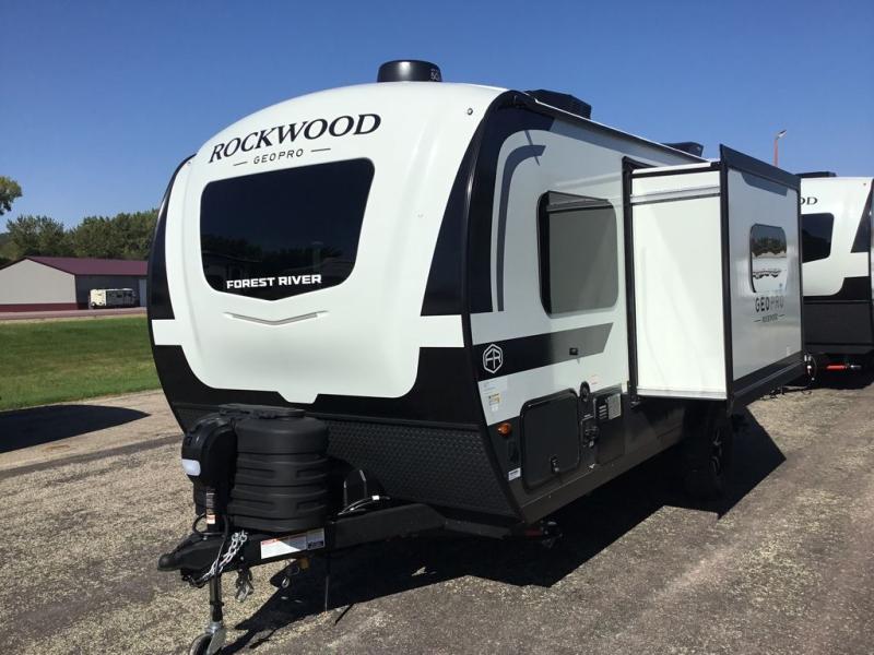 With any Rockwood GEO Pro travel trailer by Forest River you will enjoy easy towing, durable construction, and off-road capabilities with larger laminated roof! Each model is constructed with complete composite wall construction for added strength and durability, and Dexter® axles that will make towing easier than ever. Inside, you'll find sleek back up camera prep for added security, a refrigerator and a microwave, plus many other interior amenities that will make you feel at home on the road.