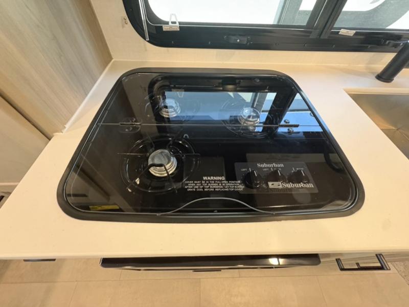 This is the perfect couple's trailer, so sneak away for a weekend in the woods. There is a 72" sofa with cupholders with a table that will be perfect for meals times and relaxing. This model includes a 12V TV to keep you busy on those rainy days, and the queen bed will provide a great night's rest. This model also include an 11' power awning so you can enjoy those nice days outdoors!