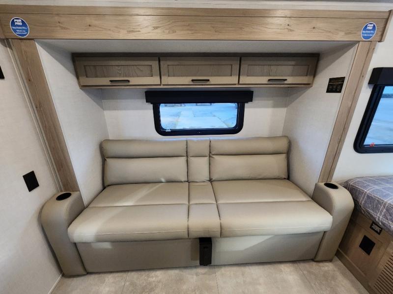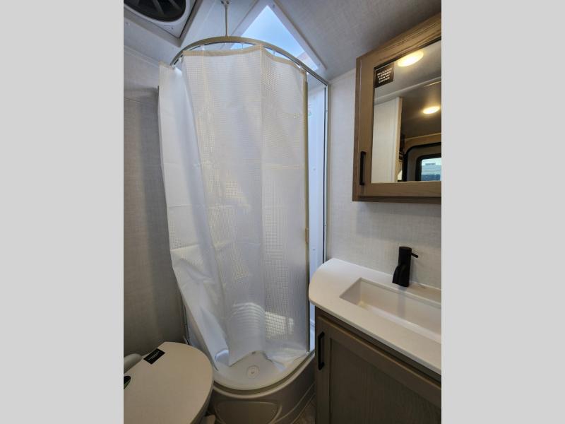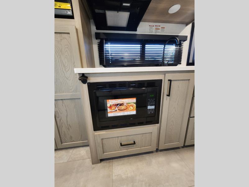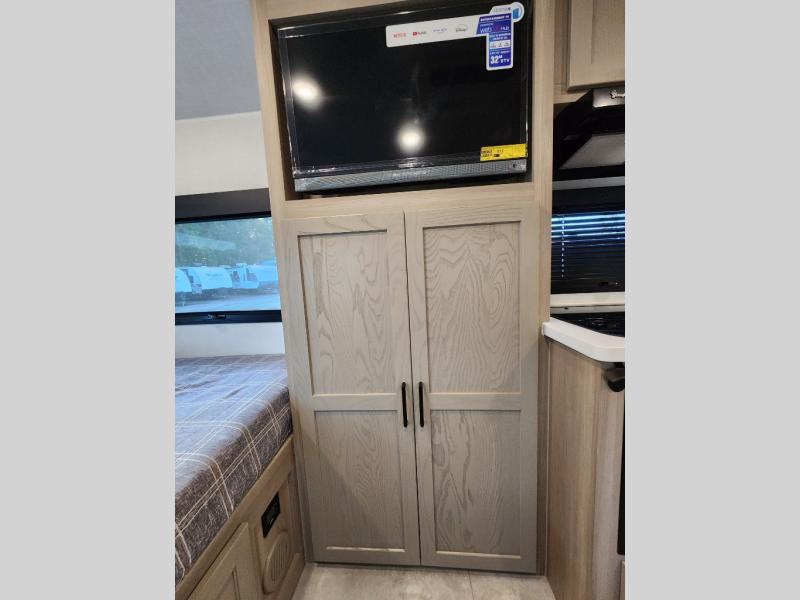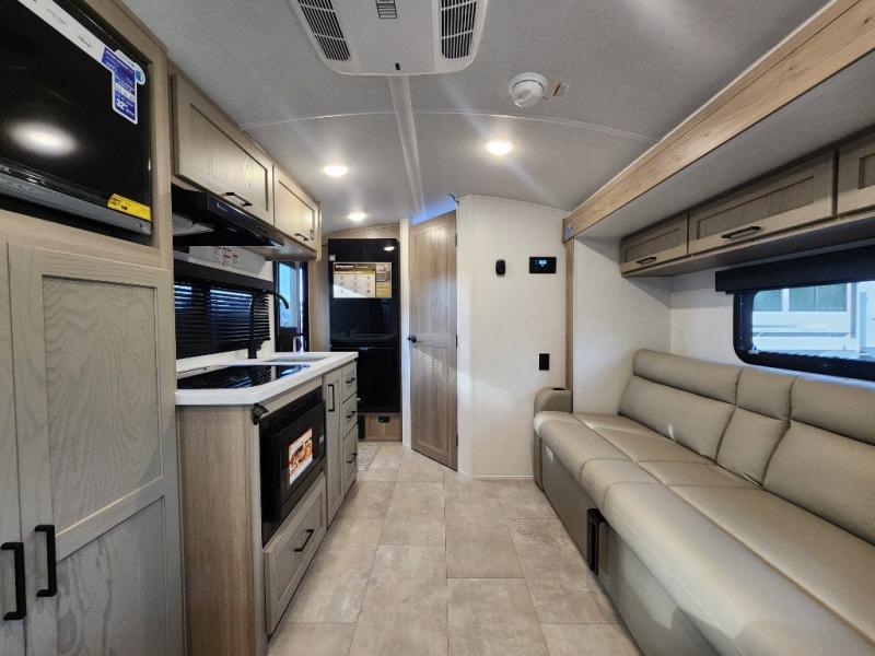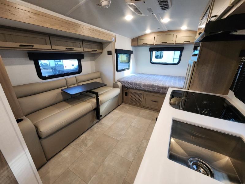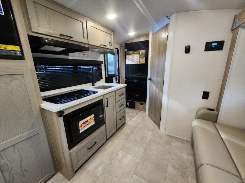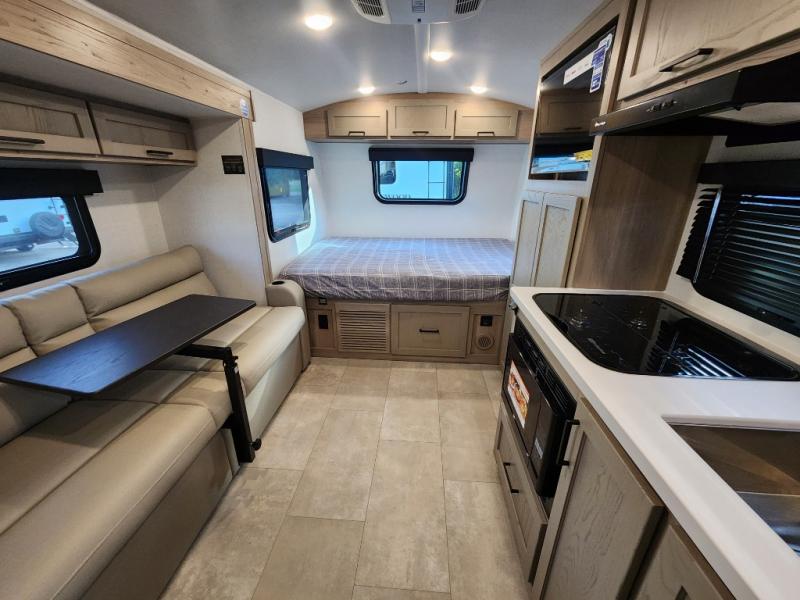This is the perfect couple's trailer, so sneak away for a weekend in the woods. There is a 72" sofa with cupholders with a table that will be perfect for meals times and relaxing. This model includes a 12V TV to keep you busy on those rainy days, and the queen bed will provide a great night's rest. This model also include an 11' power awning so you can enjoy those nice days outdoors!