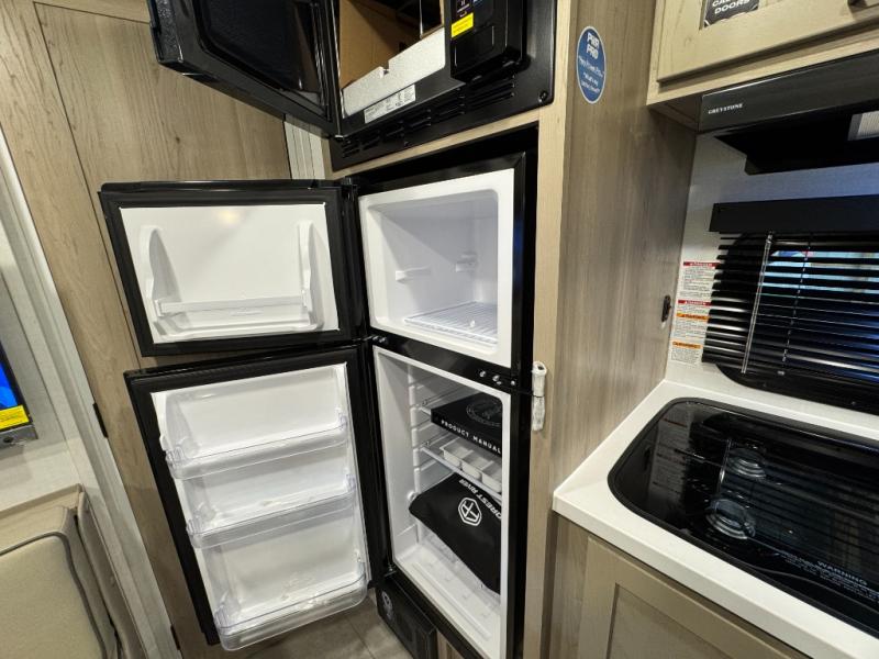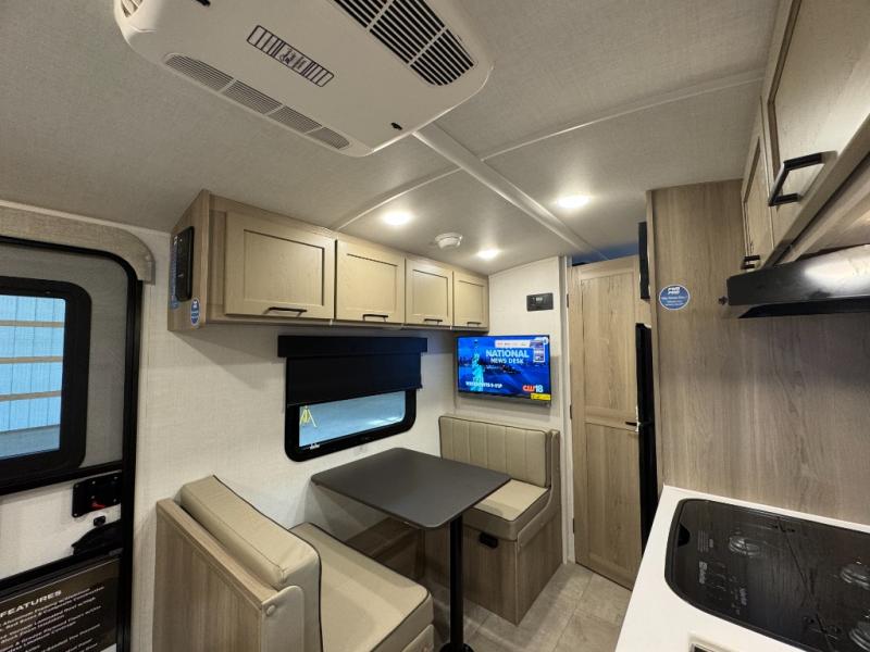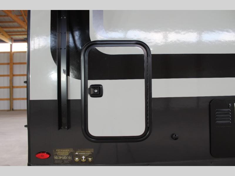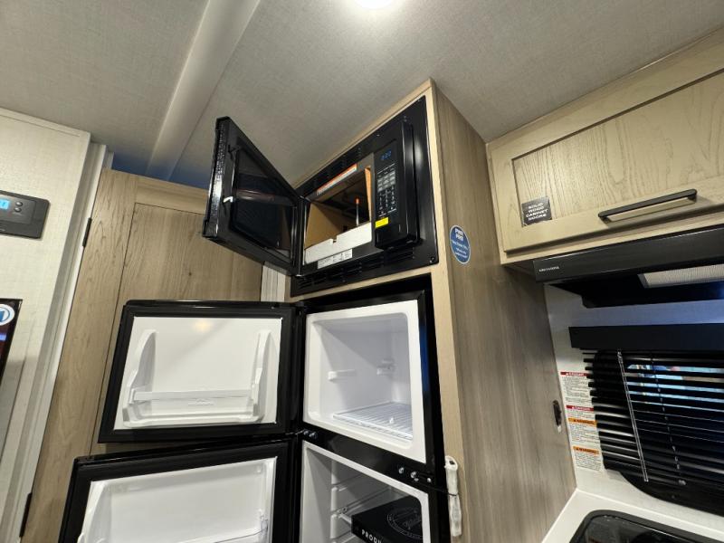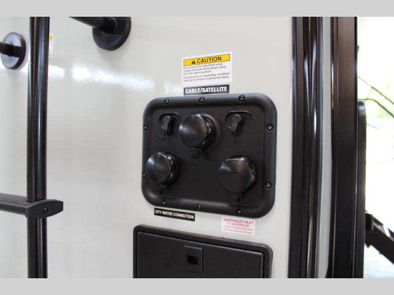 You will love how versatile this travel trailer is thanks to the Murphy bed up front. After you've had a great night's rest, just fold it up to relax on the 72" sofa. This will give the chef more space in the morning to prepare breakfast on the three burner cooktop or in the microwave oven. There is a 32" booth dinette to dine at, or you may just want to take your plate outdoors under the 14' power awning. The full rear bath includes a large linen closet to store clean towels and there is a Showermiser Water Saver you are sure to appreciate. You will appreciate a pass-through storage, plus additional exterior storage so you can bring along hiking gear, water tubes, and fishing poles! The optional Power Package available on this model includes three 200W solar panels, an 11,000 BTU Coleman Mach soft start A/C, two smart remotes, and more off-grid features!