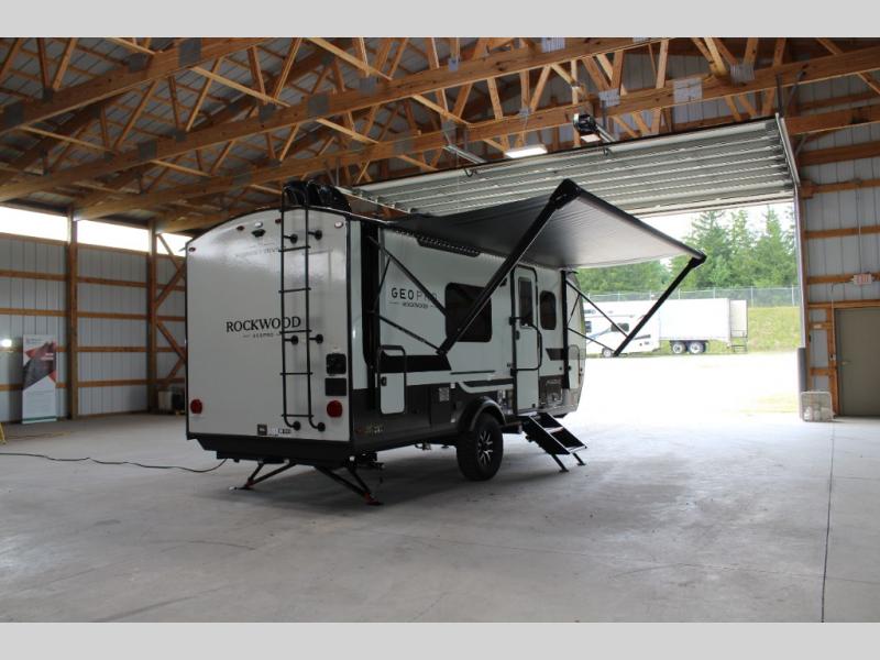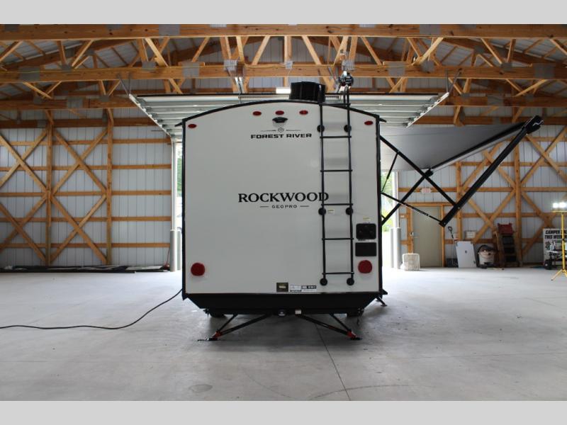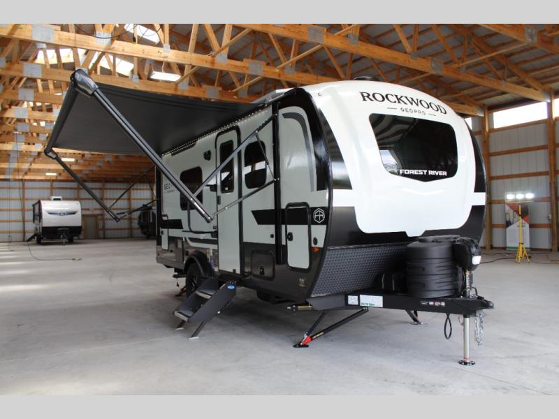With any Rockwood GEO Pro travel trailer by Forest River you will enjoy easy towing, durable construction, and off-road capabilities with larger 15" tires and a lift kit! Each model is constructed with complete composite wall construction for added strength and durability, and the torsion axle, Rubber-Ryde suspension will make towing easier than ever. Inside, you'll find sleek roller shades for added privacy, a 12V refrigerator and a microwave, plus a 20,000 BTU furnace to keep you warm during the colder camping months.