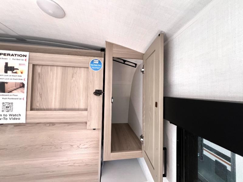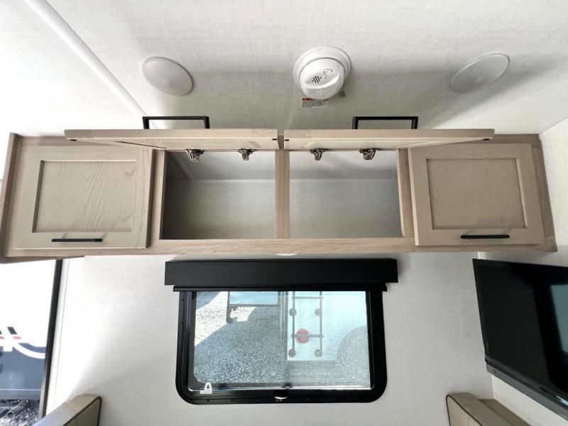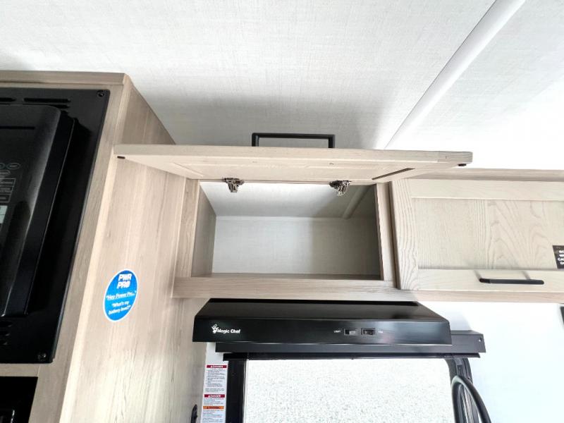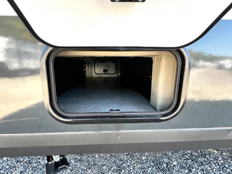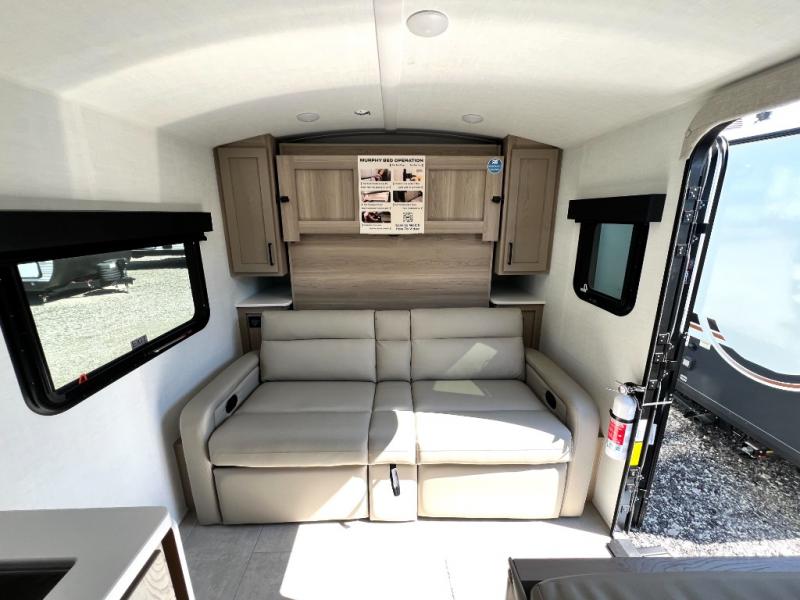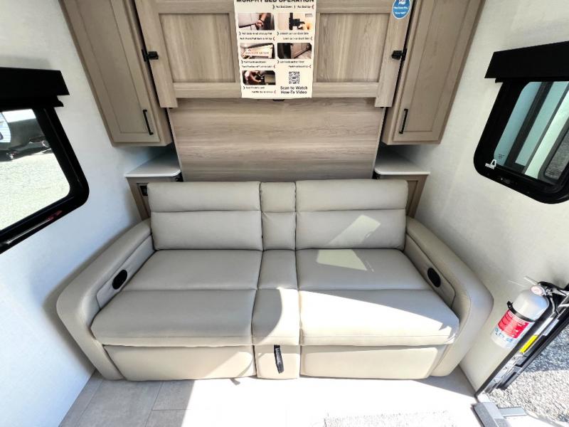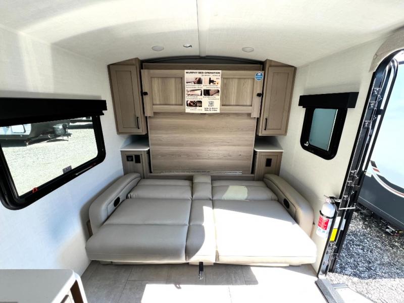 You will love how versatile this travel trailer is thanks to the Murphy bed up front. After you've had a great night's rest, just fold it up to relax on the 72" sofa. This will give the chef more space in the morning to prepare breakfast on the three burner cooktop or in the microwave oven. There is a 32" booth dinette to dine at, or you may just want to take your plate outdoors under the 14' power awning. The full rear bath includes a large linen closet to store clean towels. You will appreciate a pass-through storage, plus additional exterior storage so you can bring along hiking gear, water tubes, and fishing poles!