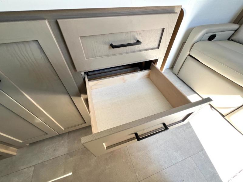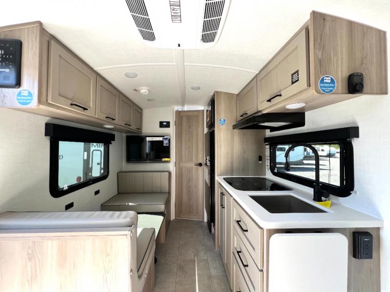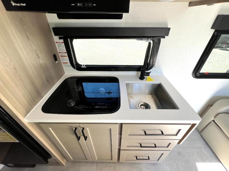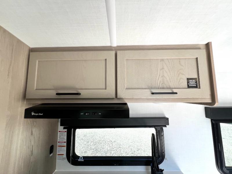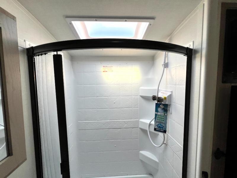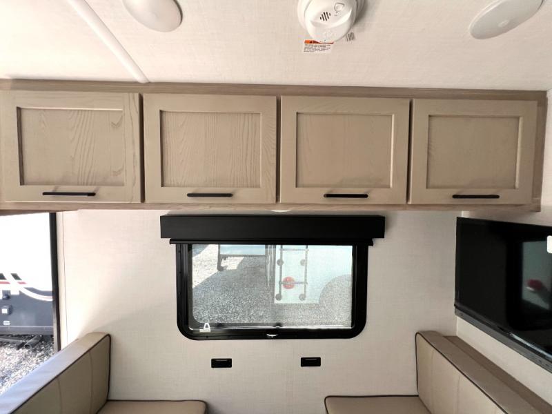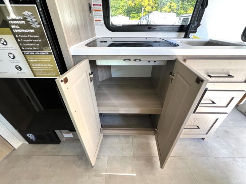 You will love how versatile this travel trailer is thanks to the Murphy bed up front. After you've had a great night's rest, just fold it up to relax on the 72" sofa. This will give the chef more space in the morning to prepare breakfast on the three burner cooktop or in the microwave oven. There is a 32" booth dinette to dine at, or you may just want to take your plate outdoors under the 14' power awning. The full rear bath includes a large linen closet to store clean towels. You will appreciate a pass-through storage, plus additional exterior storage so you can bring along hiking gear, water tubes, and fishing poles!