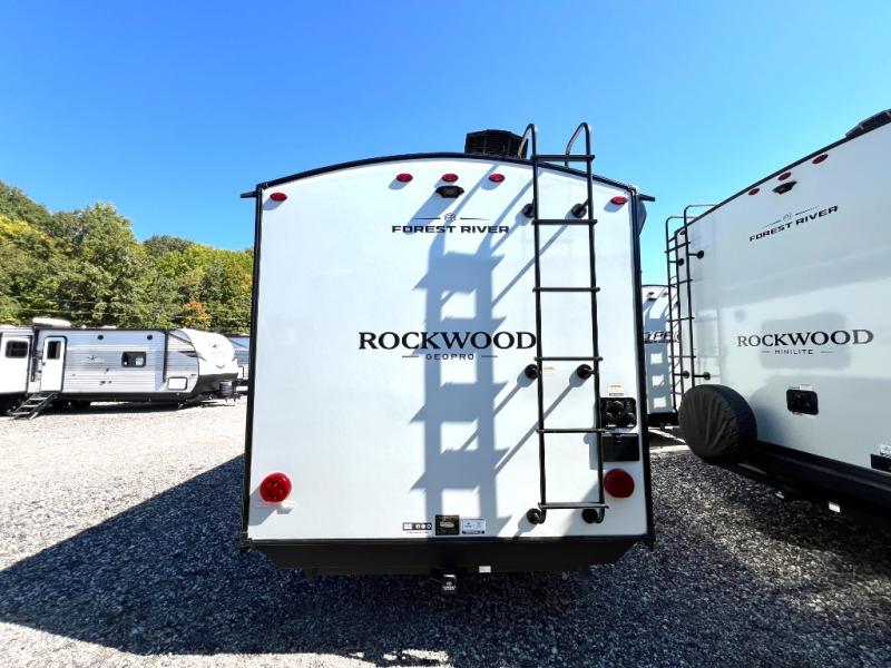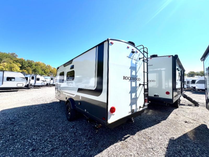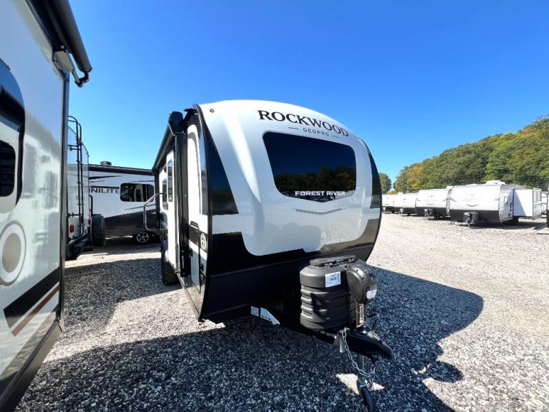 With any Rockwood GEO Pro travel trailer by Forest River you will enjoy easy towing, durable construction, and off-road capabilities with larger laminated roof! Each model is constructed with complete composite wall construction for added strength and durability, and Dexter® axles that will make towing easier than ever. Inside, you'll find sleek back up camera prep for added security, a refrigerator and a microwave, plus many other interior amenities that will make you feel at home on the road.