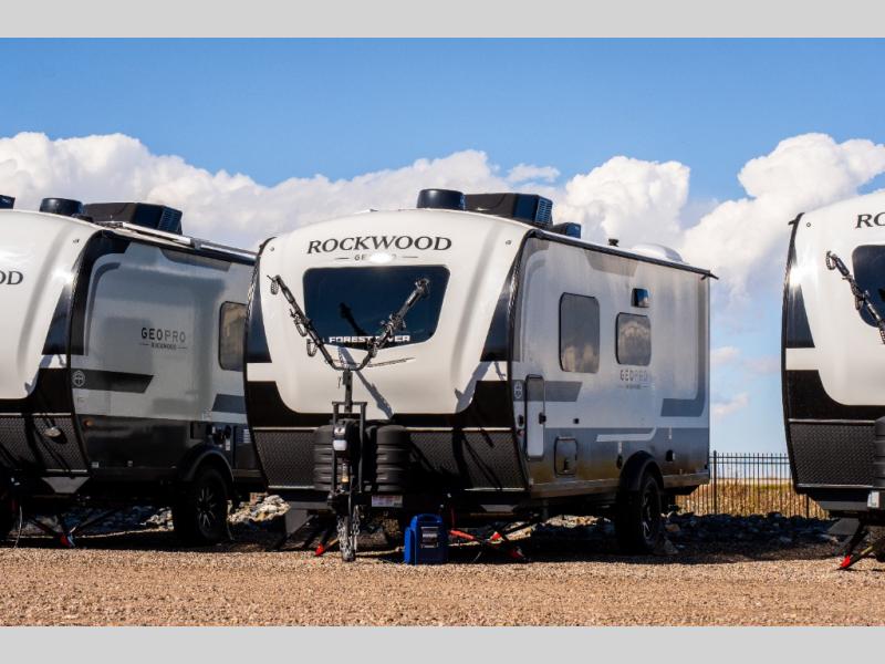 With any Rockwood GEO Pro travel trailer by Forest River you will enjoy easy towing, durable construction, and off-road capabilities with larger laminated roof! Each model is constructed with complete composite wall construction for added strength and durability, and Dexter® axles that will make towing easier than ever. Inside, you'll find sleek back up camera prep for added security, a refrigerator and a microwave, plus many other interior amenities that will make you feel at home on the road.