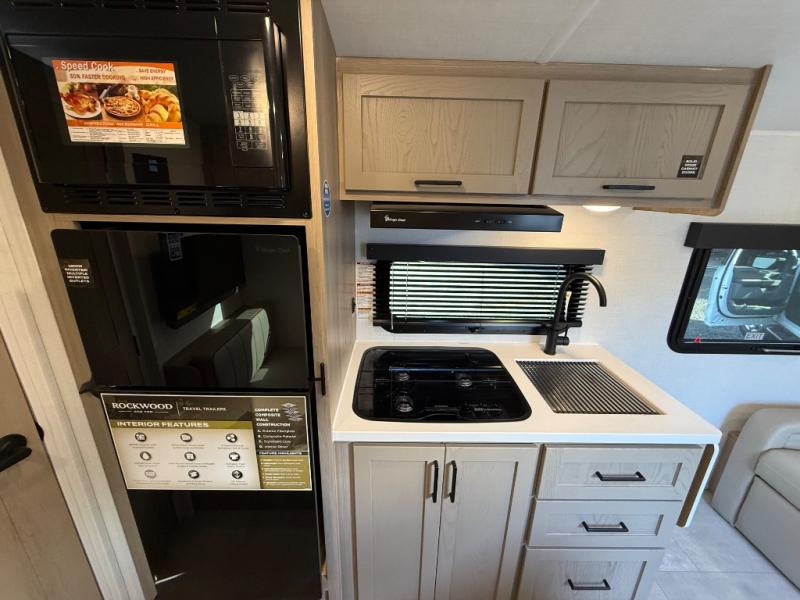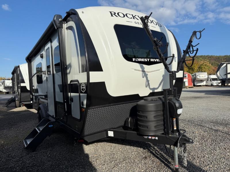 With any Rockwood GEO Pro travel trailer by Forest River you will enjoy easy towing, durable construction, and off-road capabilities with larger laminated roof! Each model is constructed with complete composite wall construction for added strength and durability, and Dexter® axles that will make towing easier than ever. Inside, you'll find sleek back up camera prep for added security, a refrigerator and a microwave, plus many other interior amenities that will make you feel at home on the road.
