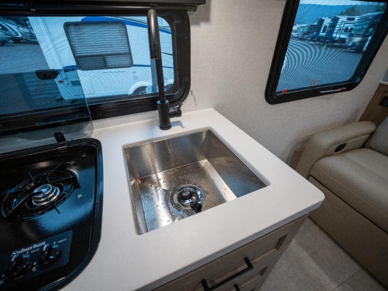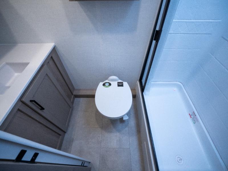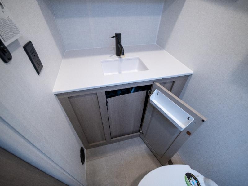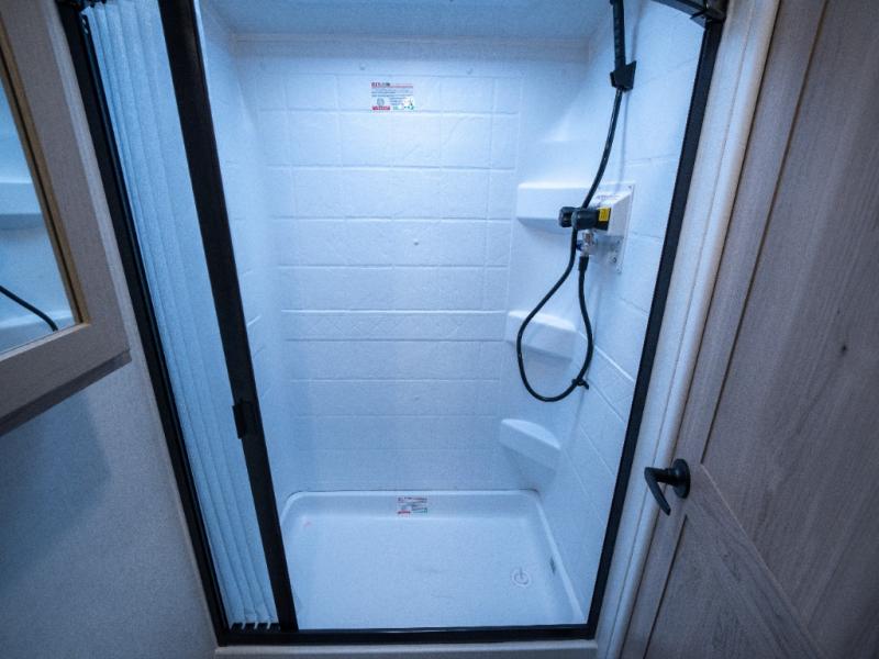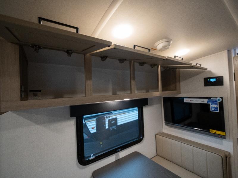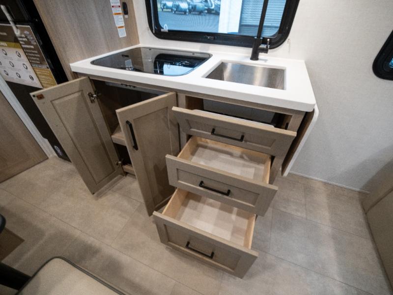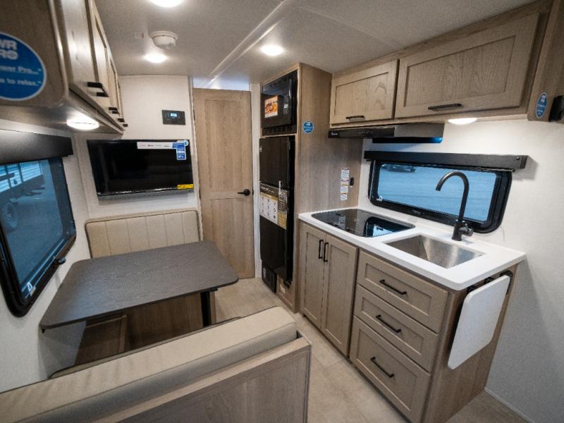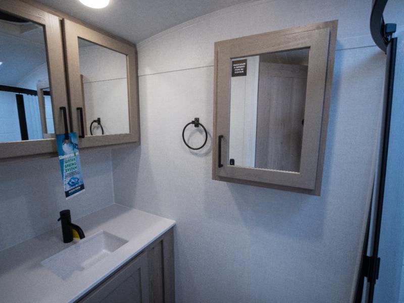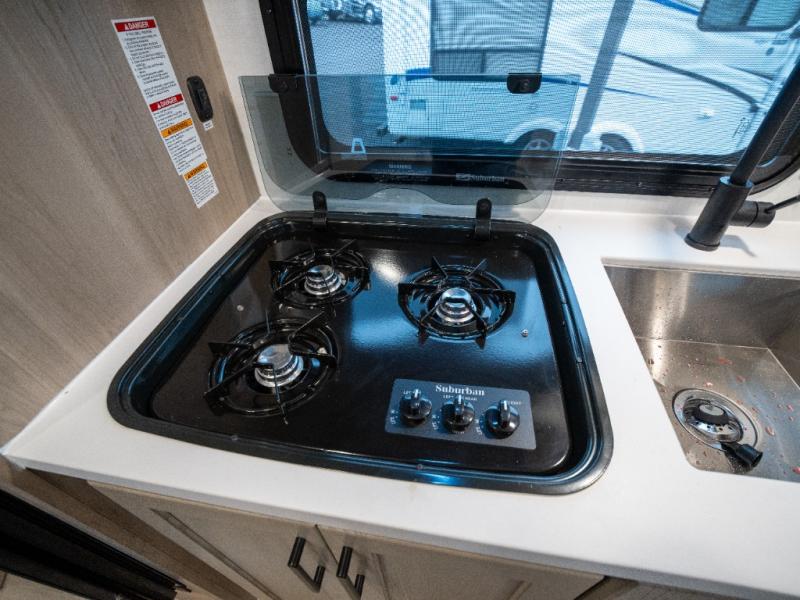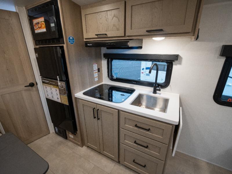 You will love how versatile this travel trailer is thanks to the Murphy bed up front. After you've had a great night's rest, just fold it up to relax on the 72" sofa. This will give the chef more space in the morning to prepare breakfast on the three burner cooktop or in the microwave oven. There is a 32" booth dinette to dine at, or you may just want to take your plate outdoors under the 14' power awning. The full rear bath includes a large linen closet to store clean towels. You will appreciate a pass-through storage, plus additional exterior storage so you can bring along hiking gear, water tubes, and fishing poles!