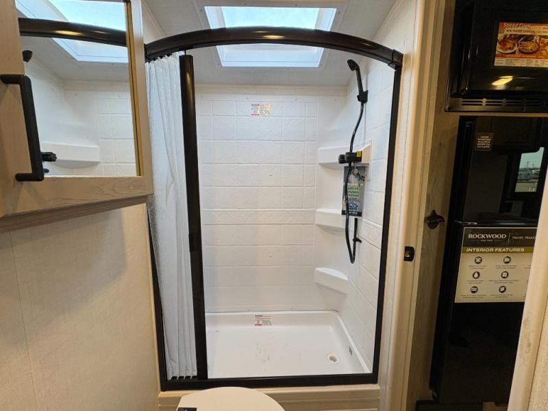With any Rockwood GEO Pro travel trailer by Forest River you will enjoy easy towing, durable construction, and off-road capabilities with a fully laminated roof! Each model is constructed with complete composite wall construction for added strength and durability, and Dexter® axles that will make towing easier than ever. Inside, you'll find sleek back up camera prep for added security, a refrigerator and a microwave, plus many other interior amenities that will make you feel at home on the road.