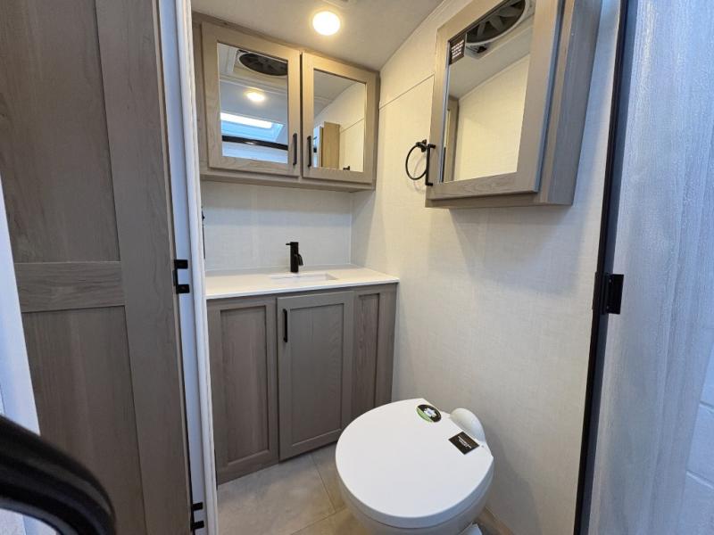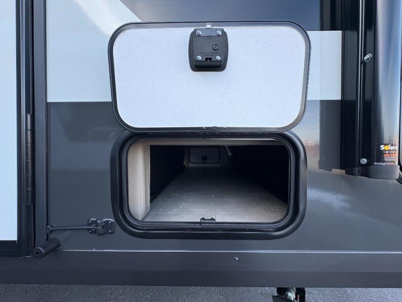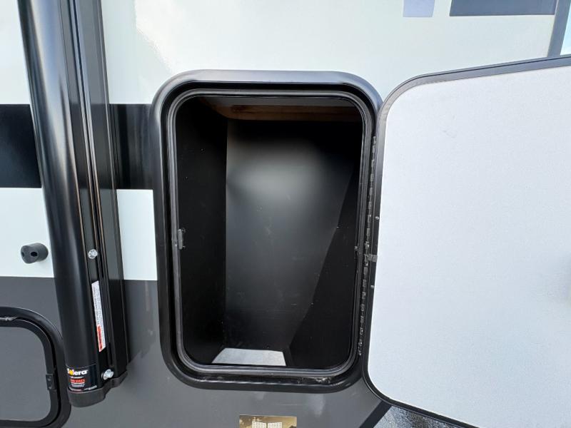 You will love how versatile this travel trailer is thanks to the Murphy bed up front. After you've had a great night's rest, just fold it up to relax on the 72" sofa. This will give the chef more space in the morning to prepare breakfast on the three burner cooktop or in the microwave oven. There is a 32" booth dinette to dine at, or you may just want to take your plate outdoors under the 14' power awning. The full rear bath includes a large linen closet to store clean towels. You will appreciate a pass-through storage, plus additional exterior storage so you can bring along hiking gear, water tubes, and fishing poles!