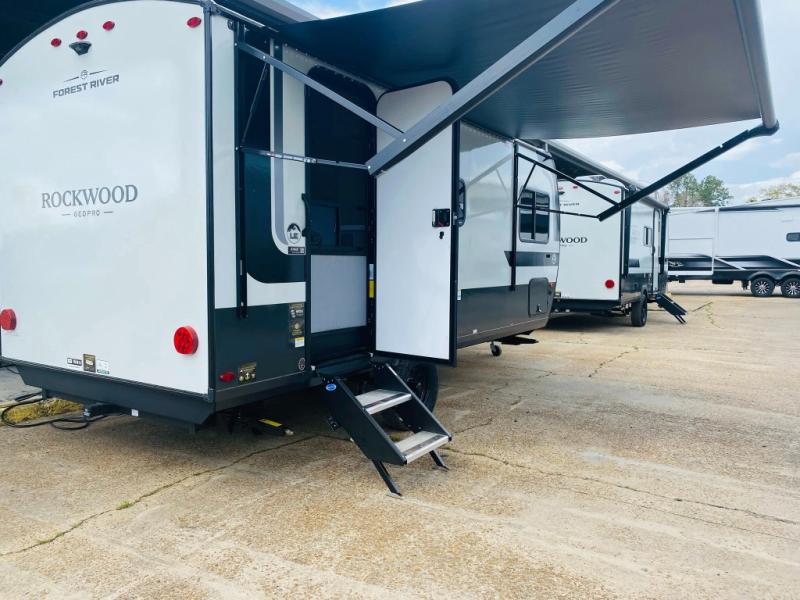 With any Rockwood GEO Pro LE travel trailer by Forest River you will enjoy easy towing, durable construction, and off-road capabilities with a fully laminated roof! Each model is constructed with complete composite wall construction for added strength and durability, and Dexter® axles that will make towing easier than ever. You will also enjoy MORryde Solid, Supported Steps for more stability and security when going inside your travel trailer. Inside, you'll find back up camera prep for added security, plus many other interior amenities that will make you feel at home on the road.
