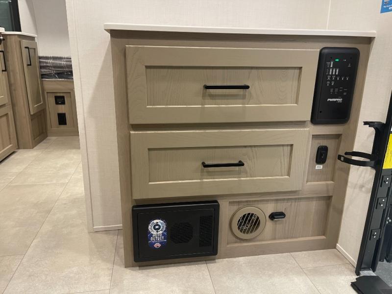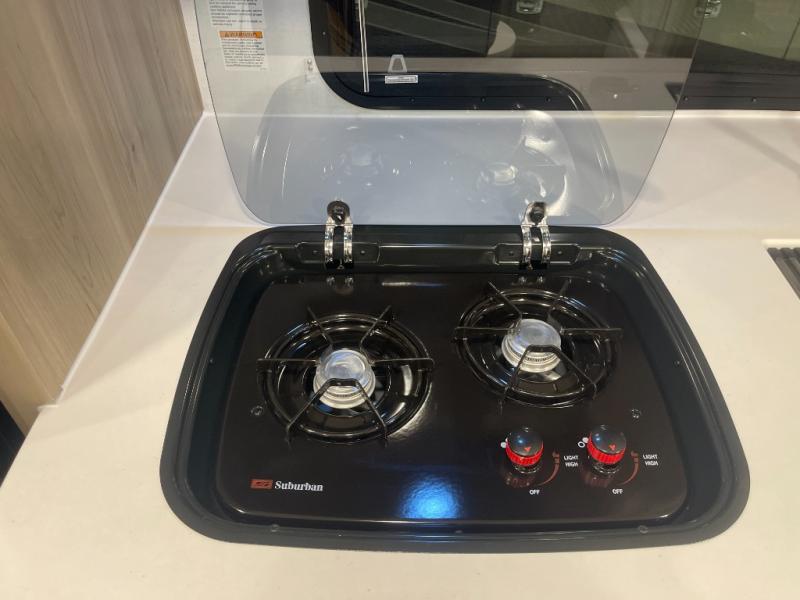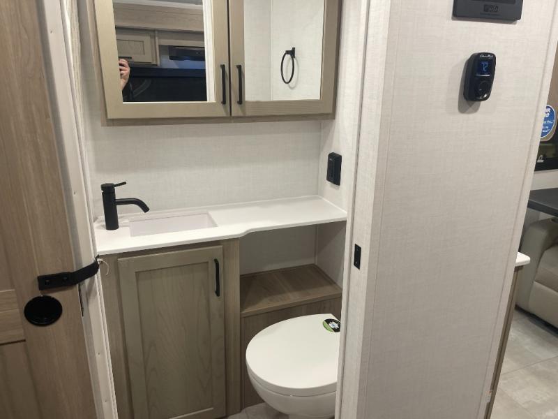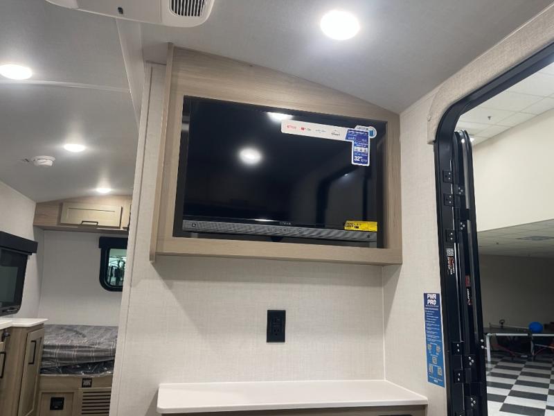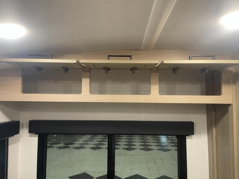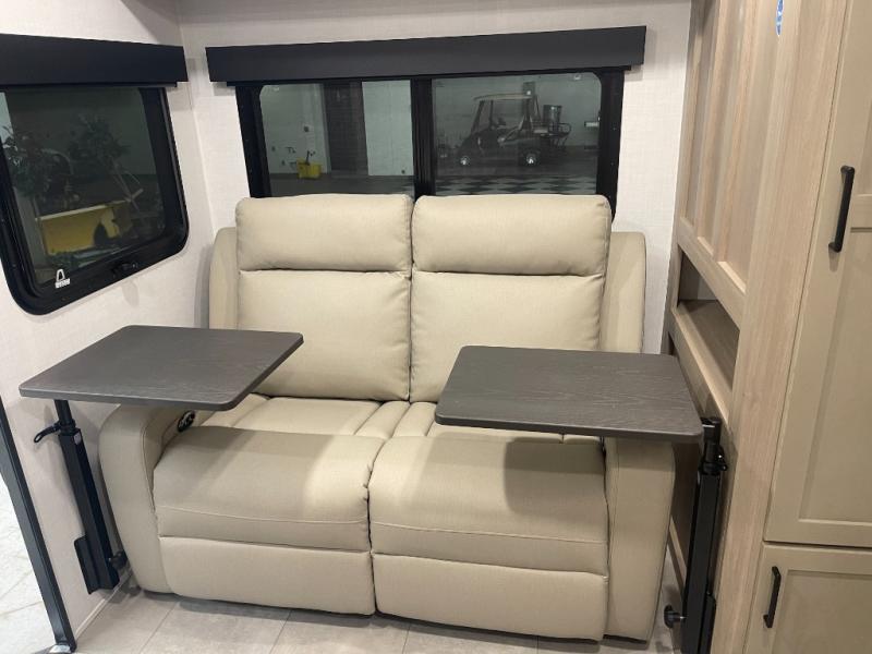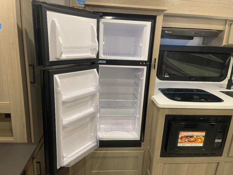 Start having unforgettable adventures with this amazing travel trailer! The queen-sized bed is the perfect spot to unwind and recharge after a day of exploring, offering a restful sleeping space that's sure to leave you feeling refreshed. The full bathroom has everything you need to refresh and rejuvenate in private. In the kitchen-living room combined area, you will find a three-burner cooktop for gourmet meals, a convection microwave for quick and easy cooking, and a spacious fridge to keep your ingredients fresh, plus overhead cabinets and a pantry/closet provide ample storage for cookware, dishes, and food. In addition, you can have endless evenings of amusement in the theater seat, which is the perfect spot to relax and enjoy your favorite shows or movies on the TV. On the outside, the exterior awning provides a shaded spot to enjoy the outdoors, while the pass-through storage offers plenty of room for gear, luggage, and equipment.
