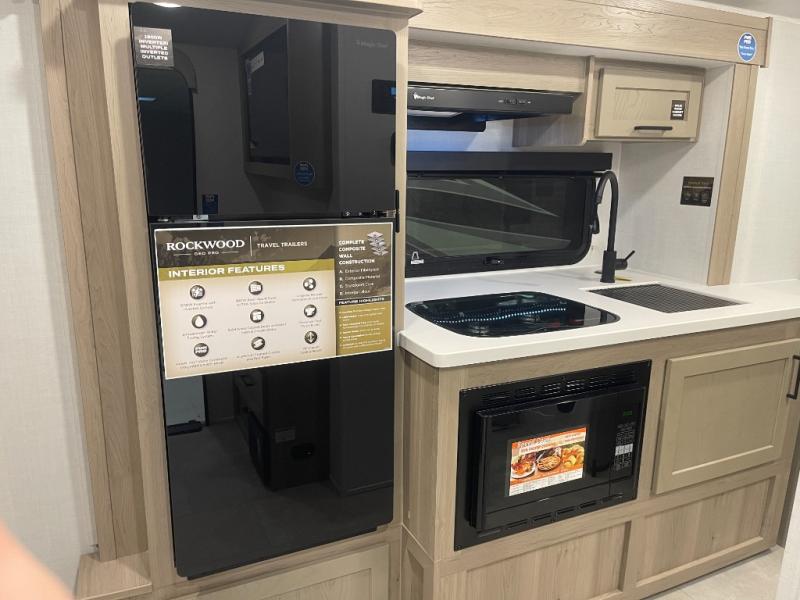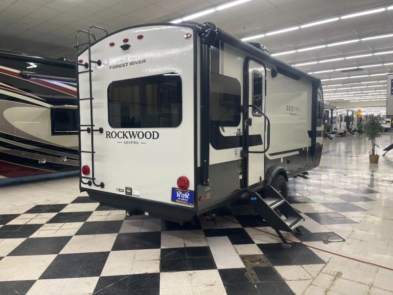 With any Rockwood GEO Pro travel trailer by Forest River you will enjoy easy towing, durable construction, and off-road capabilities with larger laminated roof! Each model is constructed with complete composite wall construction for added strength and durability, and Dexter® axles that will make towing easier than ever. Inside, you'll find sleek back up camera prep for added security, a refrigerator and a microwave, plus many other interior amenities that will make you feel at home on the road.