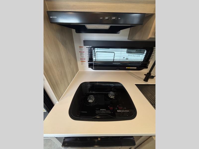 Start having unforgettable adventures with this amazing travel trailer! The queen-sized bed is the perfect spot to unwind and recharge after a day of exploring, offering a restful sleeping space that's sure to leave you feeling refreshed. The full bathroom has everything you need to refresh and rejuvenate in private. In the kitchen-living room combined area, you will find a three-burner cooktop for gourmet meals, a convection microwave for quick and easy cooking, and a spacious fridge to keep your ingredients fresh, plus overhead cabinets and a pantry/closet provide ample storage for cookware, dishes, and food. In addition, you can have endless evenings of amusement in the theater seat, which is the perfect spot to relax and enjoy your favorite shows or movies on the TV. On the outside, the exterior awning provides a shaded spot to enjoy the outdoors, while the pass-through storage offers plenty of room for gear, luggage, and equipment.