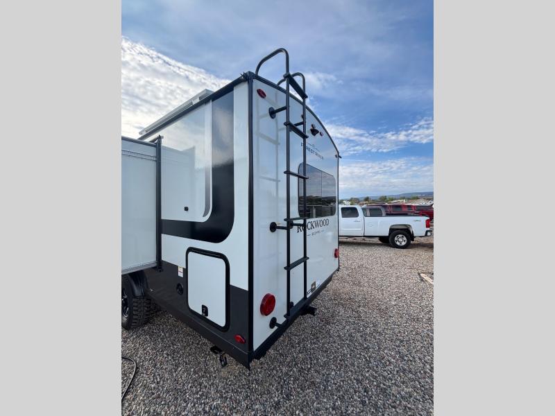 With any Rockwood GEO Pro travel trailer by Forest River you will enjoy easy towing, durable construction, and off-road capabilities with larger laminated roof! Each model is constructed with complete composite wall construction for added strength and durability, and Dexter® axles that will make towing easier than ever. Inside, you'll find sleek back up camera prep for added security, a refrigerator and a microwave, plus many other interior amenities that will make you feel at home on the road.