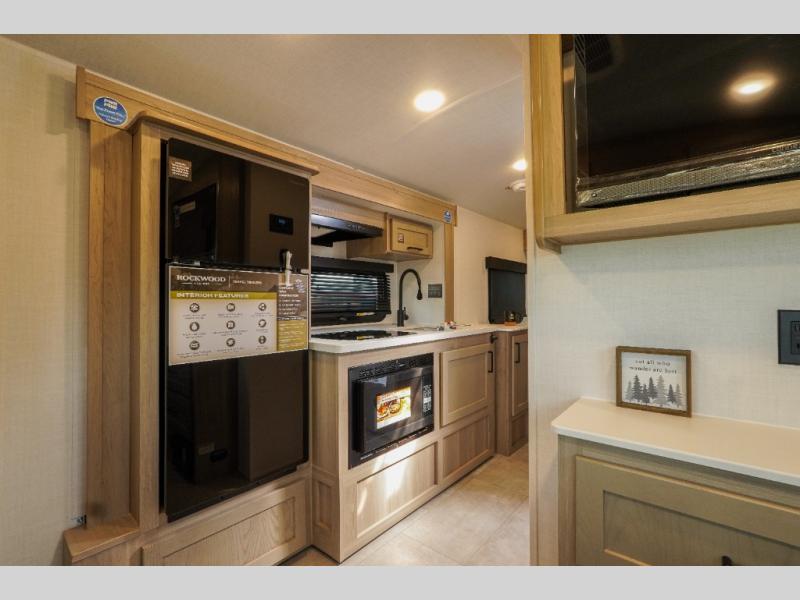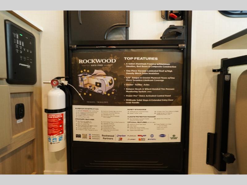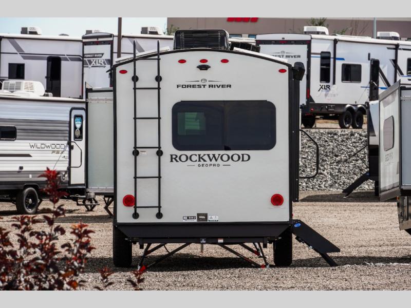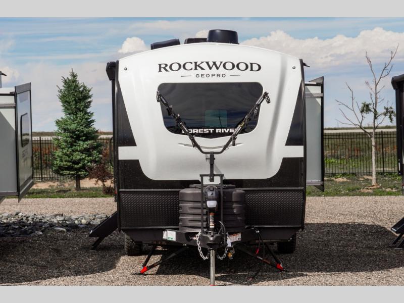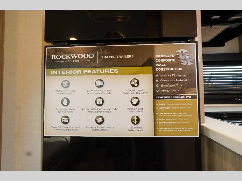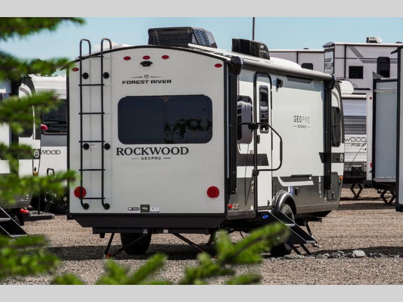 With any Rockwood GEO Pro travel trailer by Forest River you will enjoy easy towing, durable construction, and off-road capabilities with larger laminated roof! Each model is constructed with complete composite wall construction for added strength and durability, and Dexter® axles that will make towing easier than ever. Inside, you'll find sleek back up camera prep for added security, a refrigerator and a microwave, plus many other interior amenities that will make you feel at home on the road.