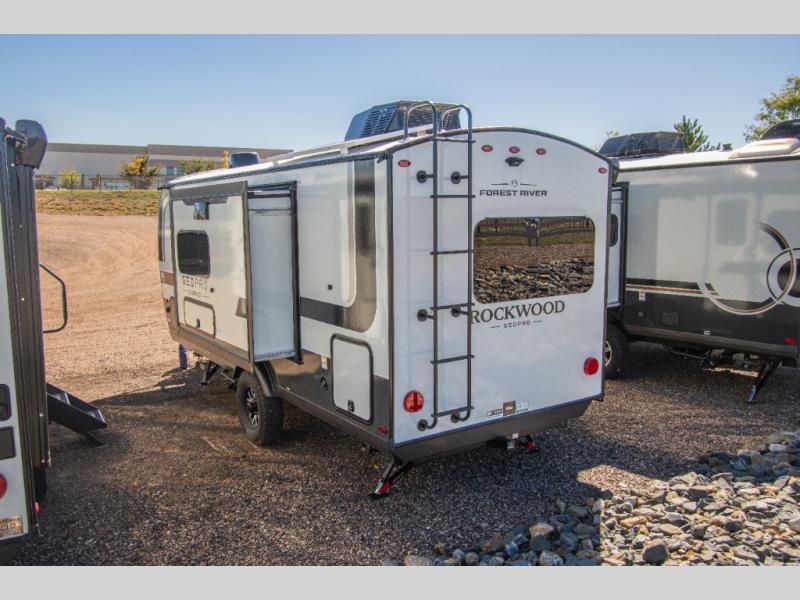 With any Rockwood GEO Pro travel trailer by Forest River you will enjoy easy towing, durable construction, and off-road capabilities with larger laminated roof! Each model is constructed with complete composite wall construction for added strength and durability, and Dexter® axles that will make towing easier than ever. Inside, you'll find sleek back up camera prep for added security, a refrigerator and a microwave, plus many other interior amenities that will make you feel at home on the road.