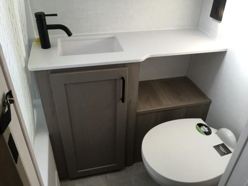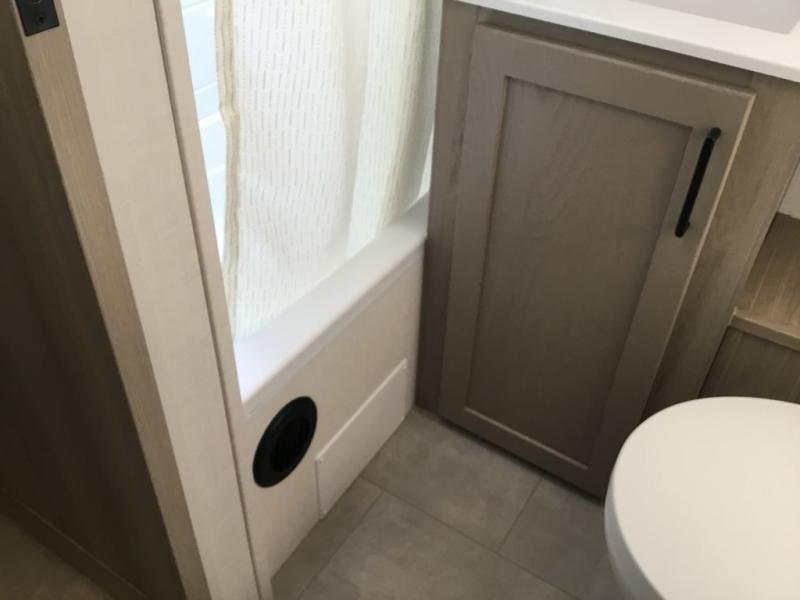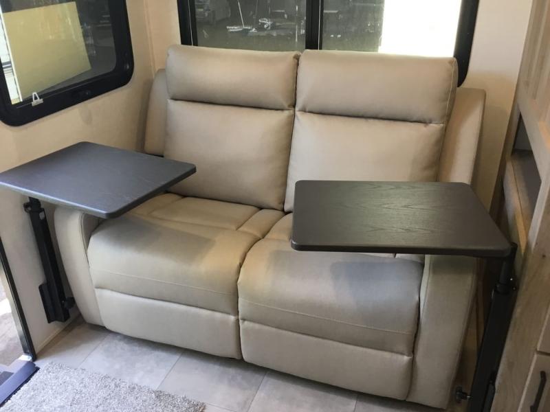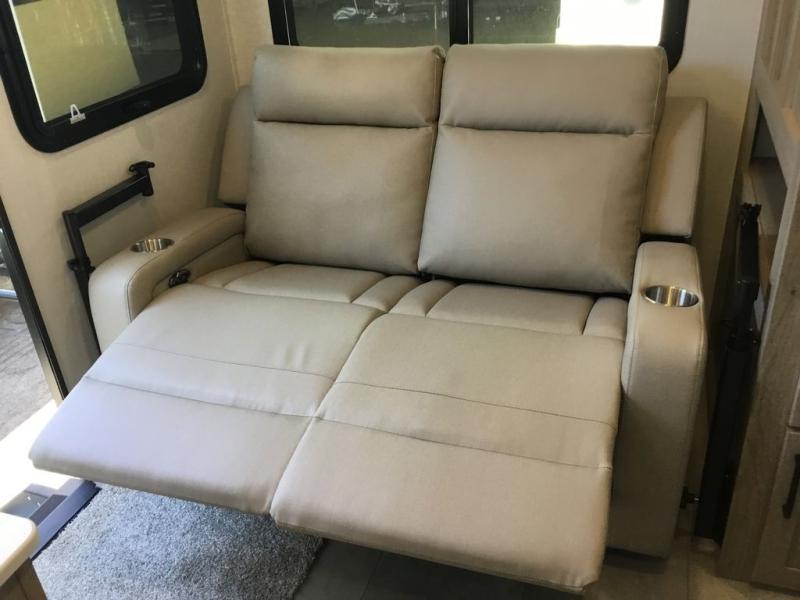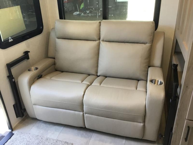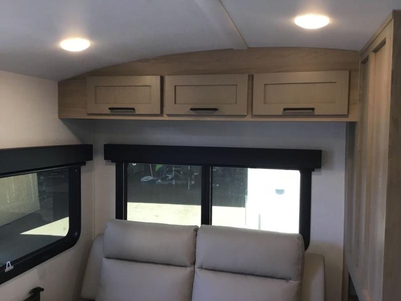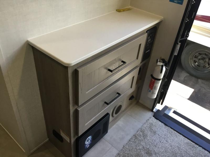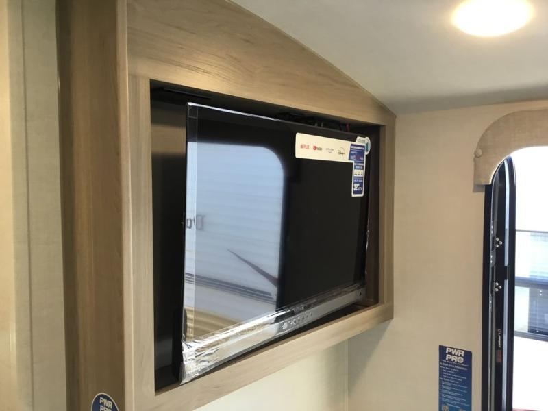 Start having unforgettable adventures with this amazing travel trailer! The queen-sized bed is the perfect spot to unwind and recharge after a day of exploring, offering a restful sleeping space that's sure to leave you feeling refreshed. The full bathroom has everything you need to refresh and rejuvenate in private. In the kitchen-living room combined area, you will find a three-burner cooktop for gourmet meals, a convection microwave for quick and easy cooking, and a spacious fridge to keep your ingredients fresh, plus overhead cabinets and a pantry/closet provide ample storage for cookware, dishes, and food. In addition, you can have endless evenings of amusement in the theater seat, which is the perfect spot to relax and enjoy your favorite shows or movies on the TV. On the outside, the exterior awning provides a shaded spot to enjoy the outdoors, while the pass-through storage offers plenty of room for gear, luggage, and equipment.