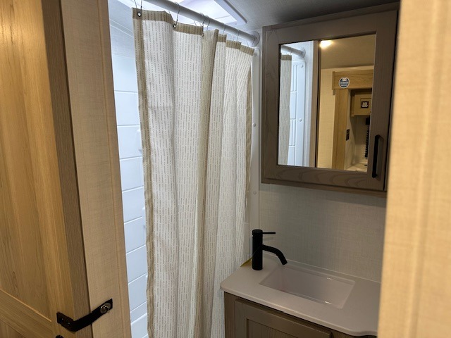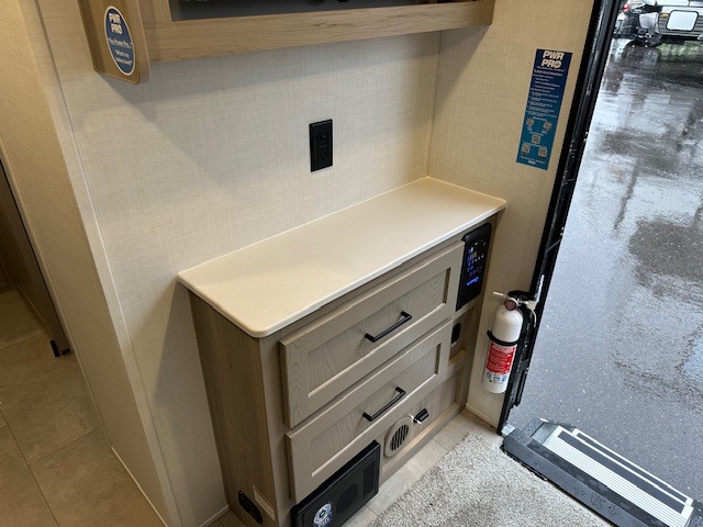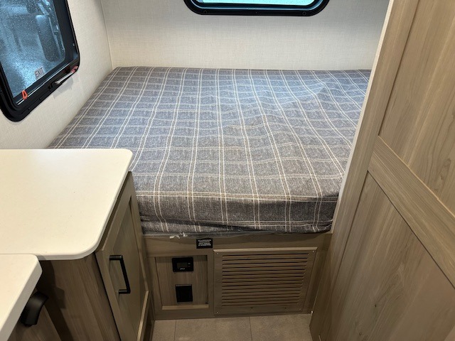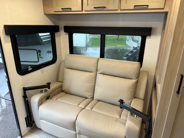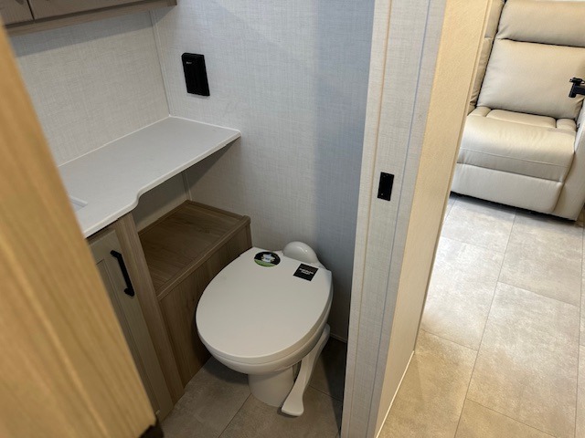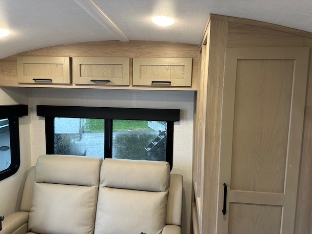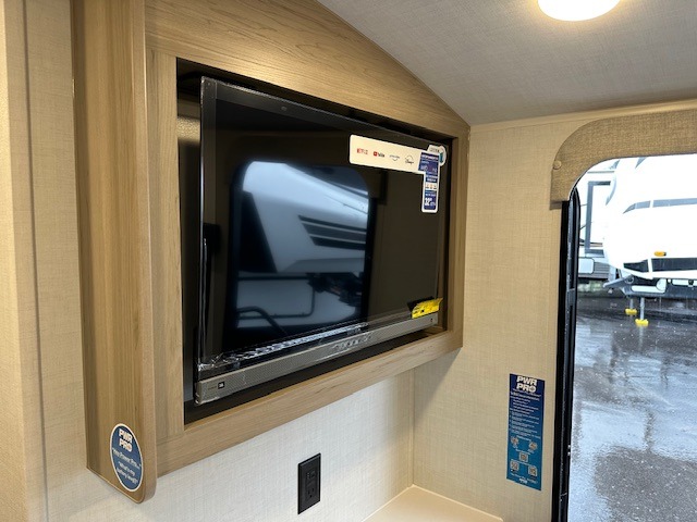 Start having unforgettable adventures with this amazing travel trailer! The queen-sized bed is the perfect spot to unwind and recharge after a day of exploring, offering a restful sleeping space that's sure to leave you feeling refreshed. The full bathroom has everything you need to refresh and rejuvenate in private. In the kitchen-living room combined area, you will find a three-burner cooktop for gourmet meals, a convection microwave for quick and easy cooking, and a spacious fridge to keep your ingredients fresh, plus overhead cabinets and a pantry/closet provide ample storage for cookware, dishes, and food. In addition, you can have endless evenings of amusement in the theater seat, which is the perfect spot to relax and enjoy your favorite shows or movies on the TV. On the outside, the exterior awning provides a shaded spot to enjoy the outdoors, while the pass-through storage offers plenty of room for gear, luggage, and equipment.