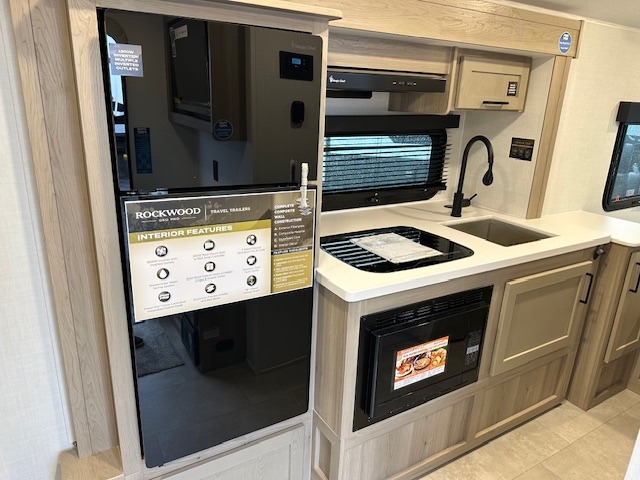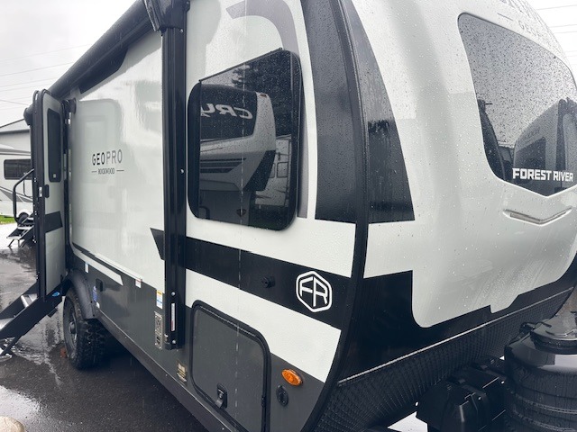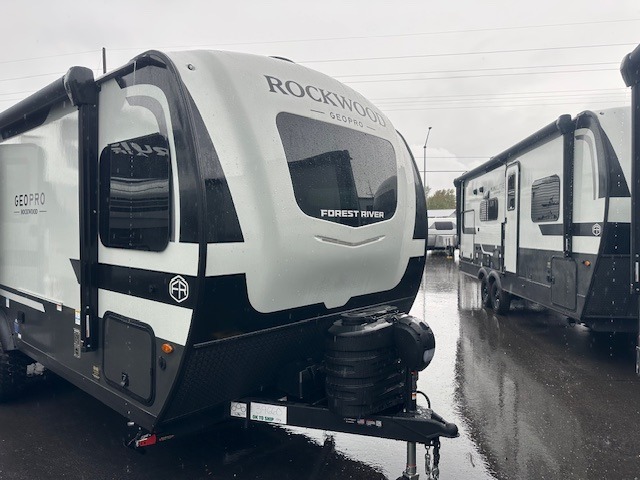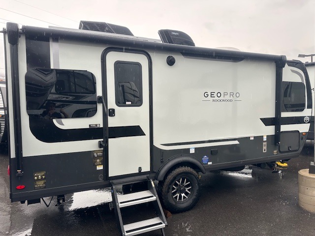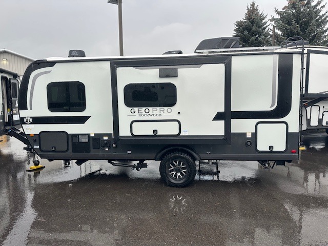 With any Rockwood GEO Pro travel trailer by Forest River you will enjoy easy towing, durable construction, and off-road capabilities with larger laminated roof! Each model is constructed with complete composite wall construction for added strength and durability, and Dexter® axles that will make towing easier than ever. Inside, you'll find sleek back up camera prep for added security, a refrigerator and a microwave, plus many other interior amenities that will make you feel at home on the road.