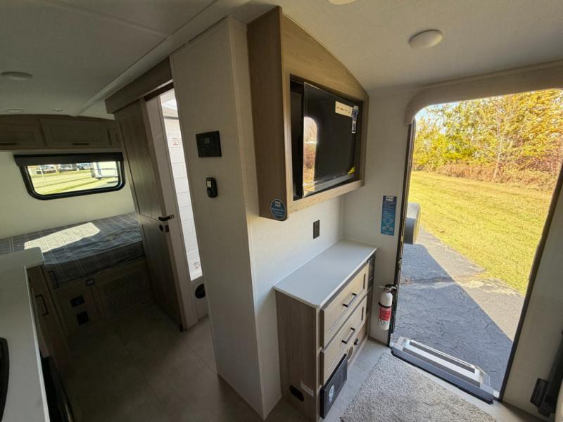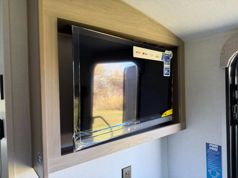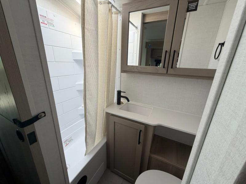 Start having unforgettable adventures with this amazing travel trailer! The queen-sized bed is the perfect spot to unwind and recharge after a day of exploring, offering a restful sleeping space that's sure to leave you feeling refreshed. The full bathroom has everything you need to refresh and rejuvenate in private. In the kitchen-living room combined area, you will find a three-burner cooktop for gourmet meals, a convection microwave for quick and easy cooking, and a spacious fridge to keep your ingredients fresh, plus overhead cabinets and a pantry/closet provide ample storage for cookware, dishes, and food. In addition, you can have endless evenings of amusement in the theater seat, which is the perfect spot to relax and enjoy your favorite shows or movies on the TV. On the outside, the exterior awning provides a shaded spot to enjoy the outdoors, while the pass-through storage offers plenty of room for gear, luggage, and equipment.