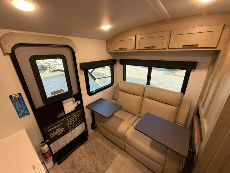 With any Rockwood GEO Pro travel trailer by Forest River you will enjoy easy towing, durable construction, and off-road capabilities with larger laminated roof! Each model is constructed with complete composite wall construction for added strength and durability, and Dexter® axles that will make towing easier than ever. Inside, you'll find sleek back up camera prep for added security, a refrigerator and a microwave, plus many other interior amenities that will make you feel at home on the road.