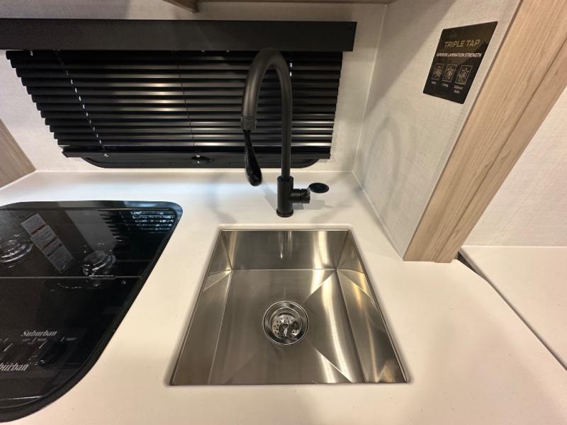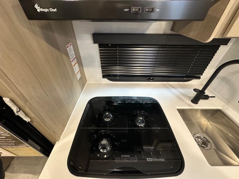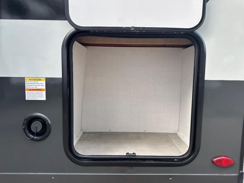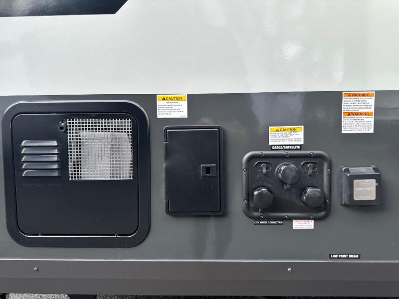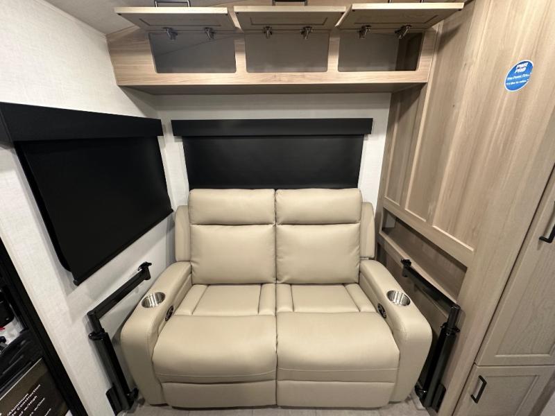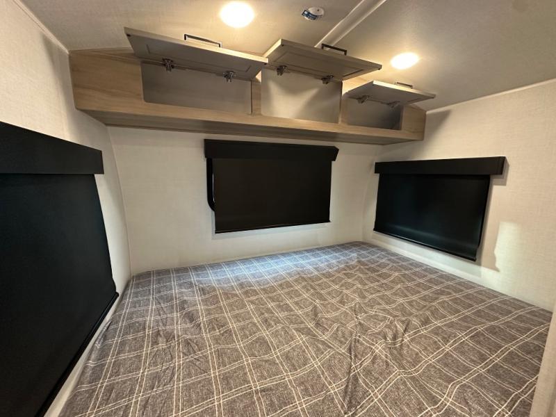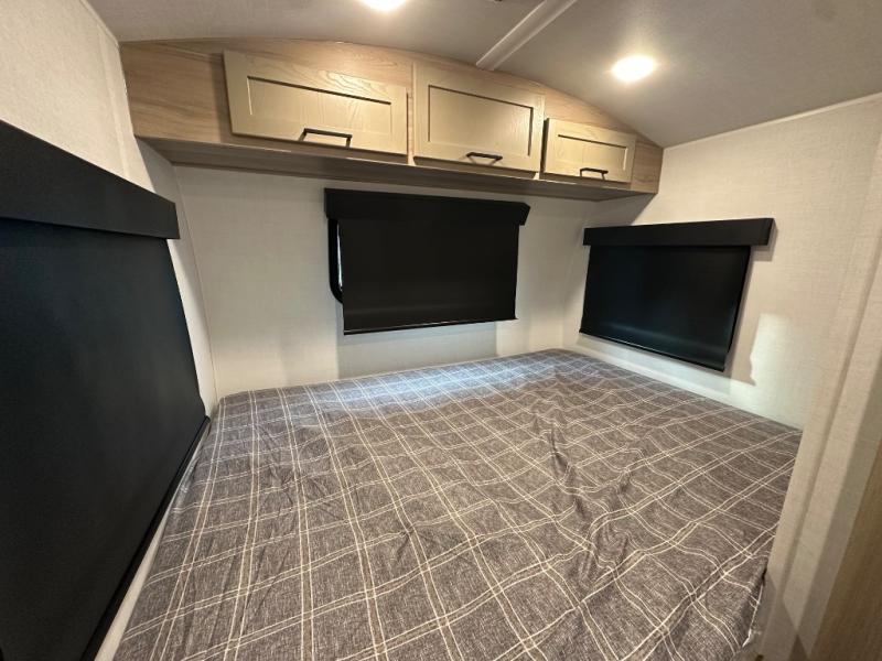 Start having unforgettable adventures with this amazing travel trailer! The queen-sized bed is the perfect spot to unwind and recharge after a day of exploring, offering a restful sleeping space that's sure to leave you feeling refreshed. The full bathroom has everything you need to refresh and rejuvenate in private. In the kitchen-living room combined area, you will find a three-burner cooktop for gourmet meals, a convection microwave for quick and easy cooking, and a spacious refrigerator to keep your ingredients fresh, plus overhead cabinets and a pantry/closet provide ample storage for cookware, dishes, and food. In addition, you can have endless evenings of amusement in the 55" theater seat, which is the perfect spot to relax and enjoy your favorite shows or movies on the TV. On the outside, the exterior awning provides a shaded spot to enjoy the outdoors, while the pass-through storage offers plenty of room for gear, luggage, and equipment.