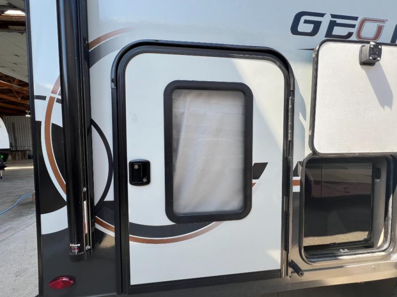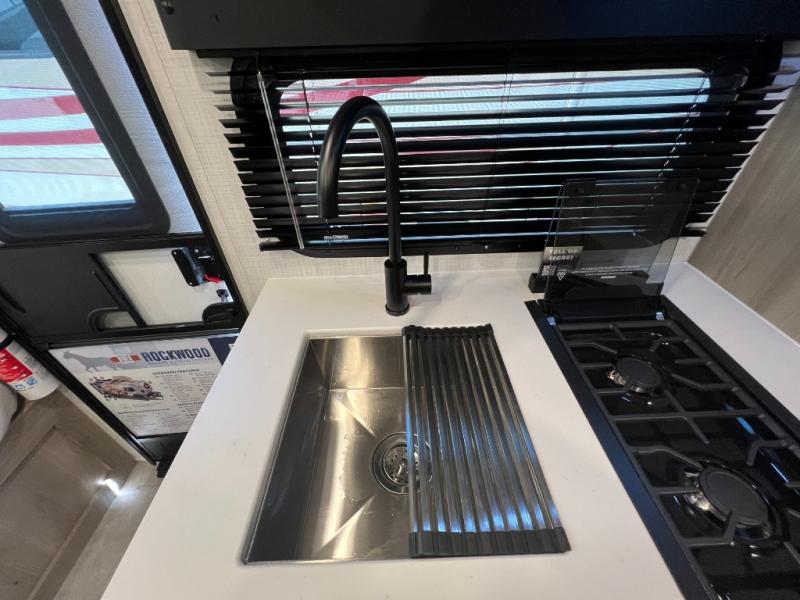 With any Rockwood GEO Pro travel trailer by Forest River you will enjoy easy towing, durable construction, and off-road capabilities with larger 15" tires and a lift kit! Each model is constructed with complete composite wall construction for added strength and durability, and the torsion axle, Rubber-Ryde suspension will make towing easier than ever. Inside, you'll find sleek roller shades for added privacy, a 12V refrigerator and a microwave, plus a 20,000 BTU furnace to keep you warm during the colder camping months.