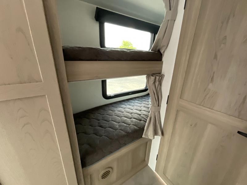 The GEO Pro G20BH stands out with its smart, family-friendly features. Inside, you’ll find cozy sleeping arrangements, a practical kitchenette, and ample storage for gear and essentials. The bunkhouse layout is perfect for families or groups, offering privacy and comfort for all passengers. Durable construction, high-quality materials, and modern amenities ensure that your travel experience is convenient, enjoyable, and worry-free. Lightweight and aerodynamic, this travel trailer is easy to tow, even with mid-size SUVs or trucks, allowing you to access remote locations that larger RVs can’t reach.