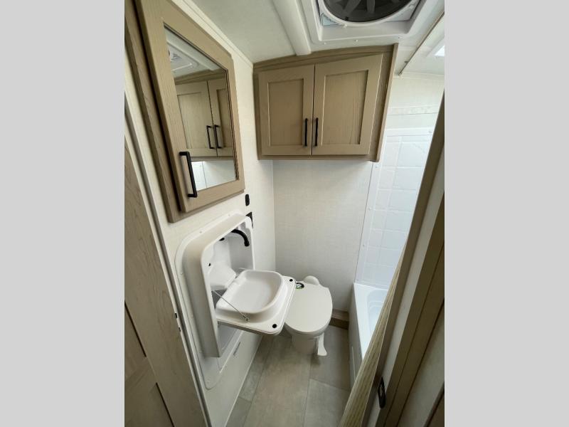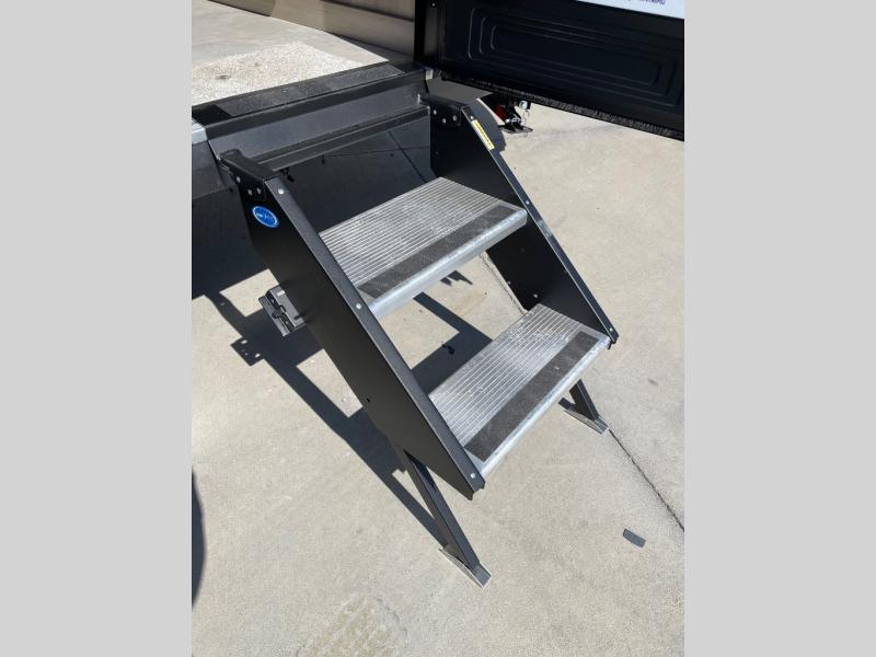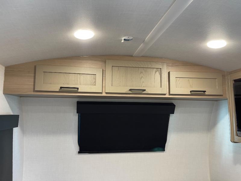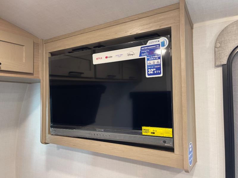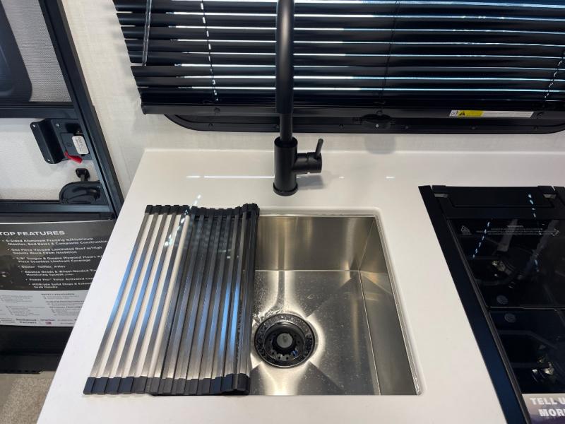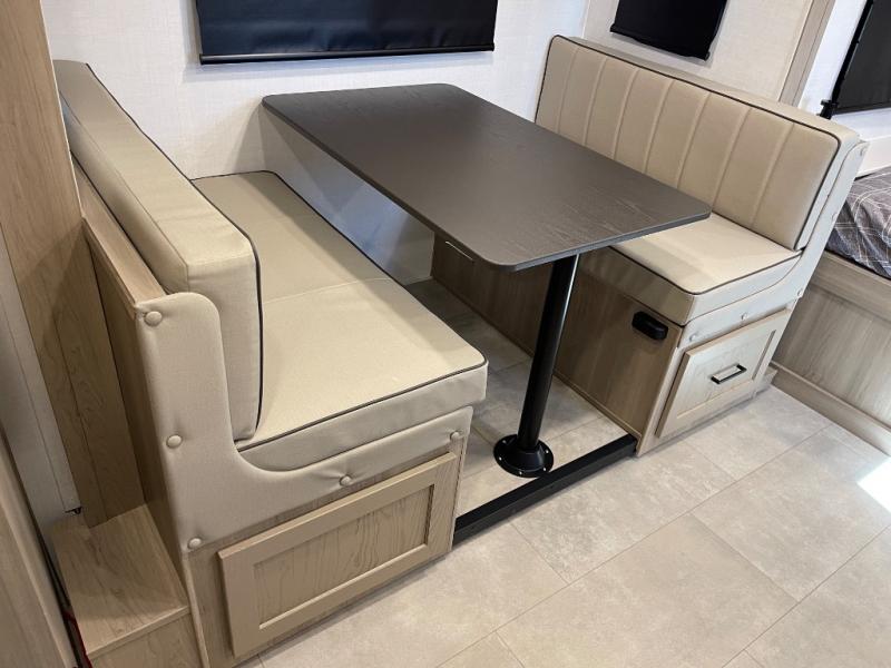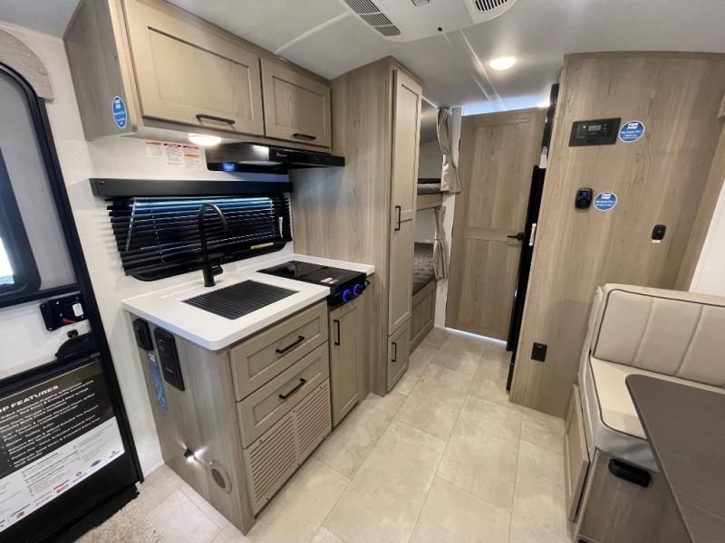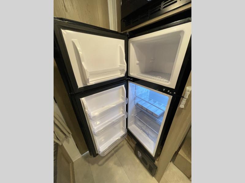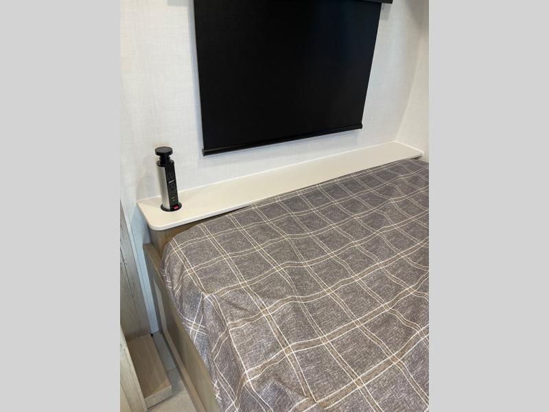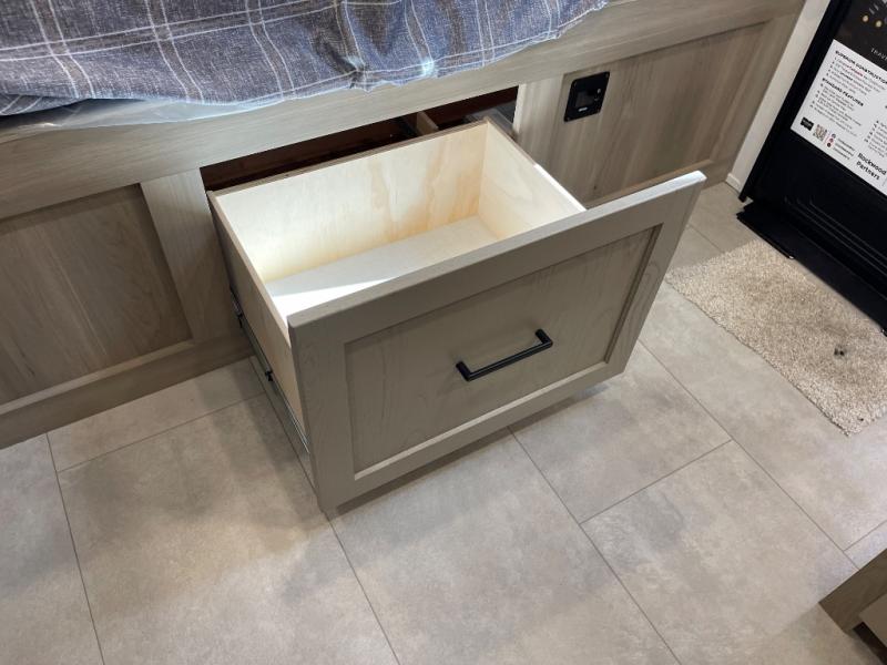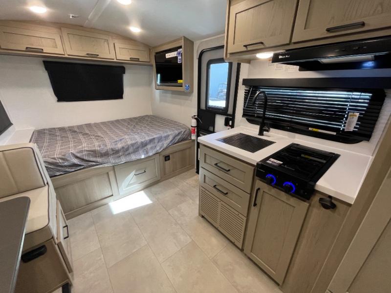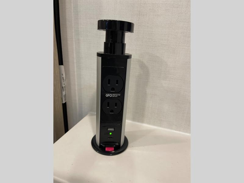 You're going to love camping with your family or friends in this spacious bunk model! The bunk beds will be perfect for little ones, while you take the front full-size bed. There is also a 44" booth dinette within the slide out for additional sleeping and seating space. The kitchen includes everything the chef will need to prepare meals each day, including a recessed cooktop, microwave oven, and a 12V refrigerator for perishables. If the weather is nice, you may just find the chef outdoors cooking on the outside griddle under the 14' power awning. And check out the exterior bike door that will be perfect for bikes, luggage, or extra camp gear. The optional Power Package available on this model includes three 200W solar panels, a 460 Ah Mastervolt MLI lithium-ion battery, two smart remotes, and more off-grid features!