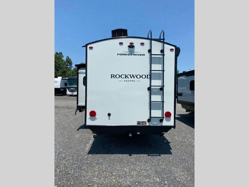 With any Rockwood GEO Pro travel trailer by Forest River you will enjoy easy towing, durable construction, and off-road capabilities with larger 15" tires and a lift kit! Each model is constructed with complete composite wall construction for added strength and durability, and the torsion axle, Rubber-Ryde suspension will make towing easier than ever. Inside, you'll find sleek roller shades for added privacy, a 12V refrigerator and a microwave, plus a 20,000 BTU furnace to keep you warm during the colder camping months.