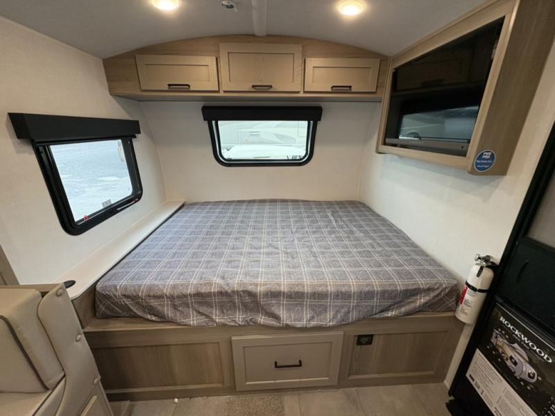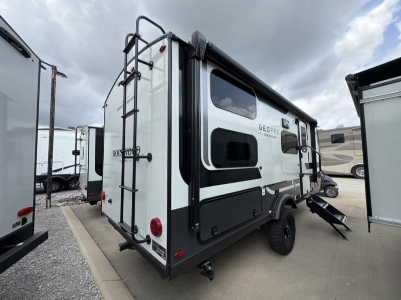 With any Rockwood GEO Pro travel trailer by Forest River you will enjoy easy towing, durable construction, and off-road capabilities with larger 15" tires and a lift kit! Each model is constructed with complete composite wall construction for added strength and durability, and the torsion axle, Rubber-Ryde suspension will make towing easier than ever. Inside, you'll find sleek roller shades for added privacy, a 12V refrigerator and a microwave, plus a 20,000 BTU furnace to keep you warm during the colder camping months.