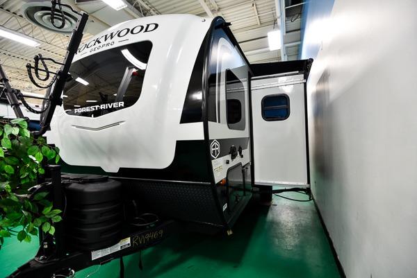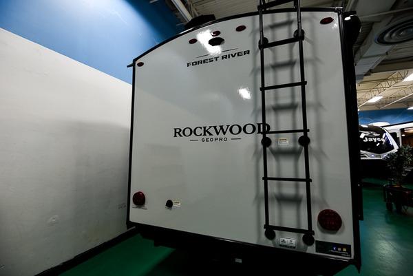 With any Rockwood GEO Pro travel trailer by Forest River you will enjoy easy towing, durable construction, and off-road capabilities with larger 15" tires and a lift kit! Each model is constructed with complete composite wall construction for added strength and durability, and the torsion axle, Rubber-Ryde suspension will make towing easier than ever. Inside, you'll find sleek roller shades for added privacy, a 12V refrigerator and a microwave, plus a 20,000 BTU furnace to keep you warm during the colder camping months.