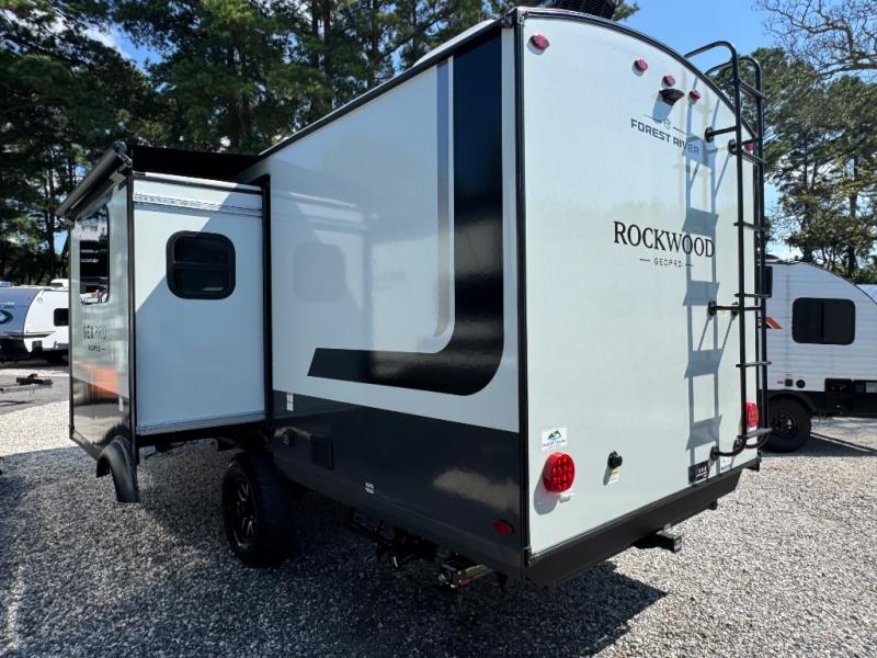 With any Rockwood GEO Pro travel trailer by Forest River you will enjoy easy towing, durable construction, and off-road capabilities with larger 15" tires and a lift kit! Each model is constructed with complete composite wall construction for added strength and durability, and the torsion axle, Rubber-Ryde suspension will make towing easier than ever. Inside, you'll find sleek roller shades for added privacy, a 12V refrigerator and a microwave, plus a 20,000 BTU furnace to keep you warm during the colder camping months.