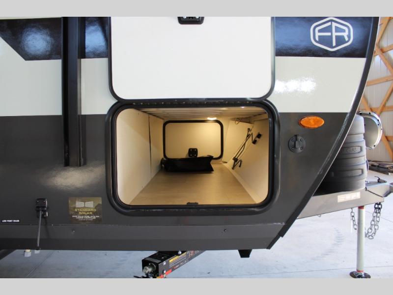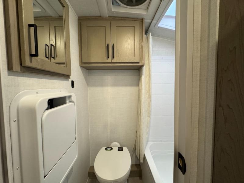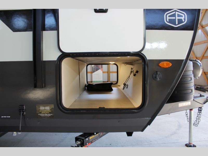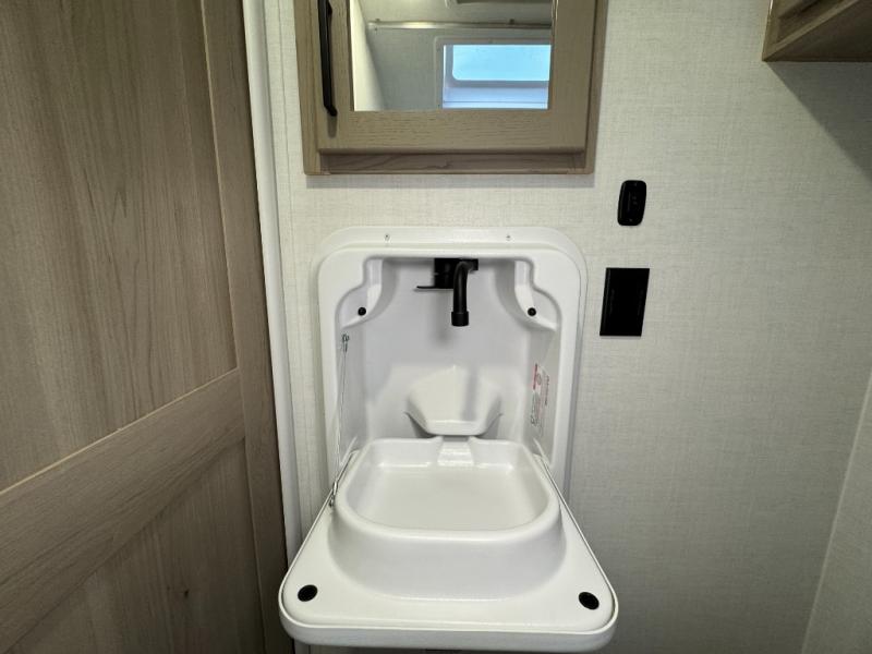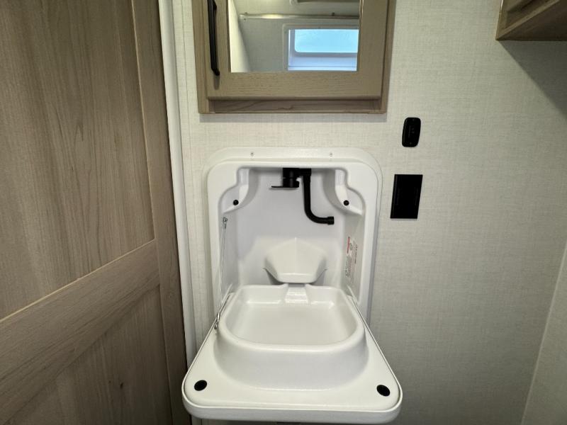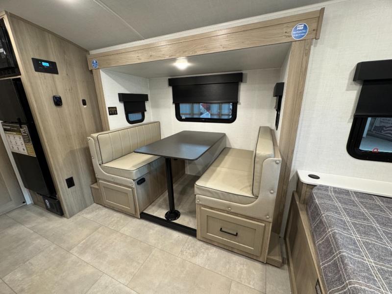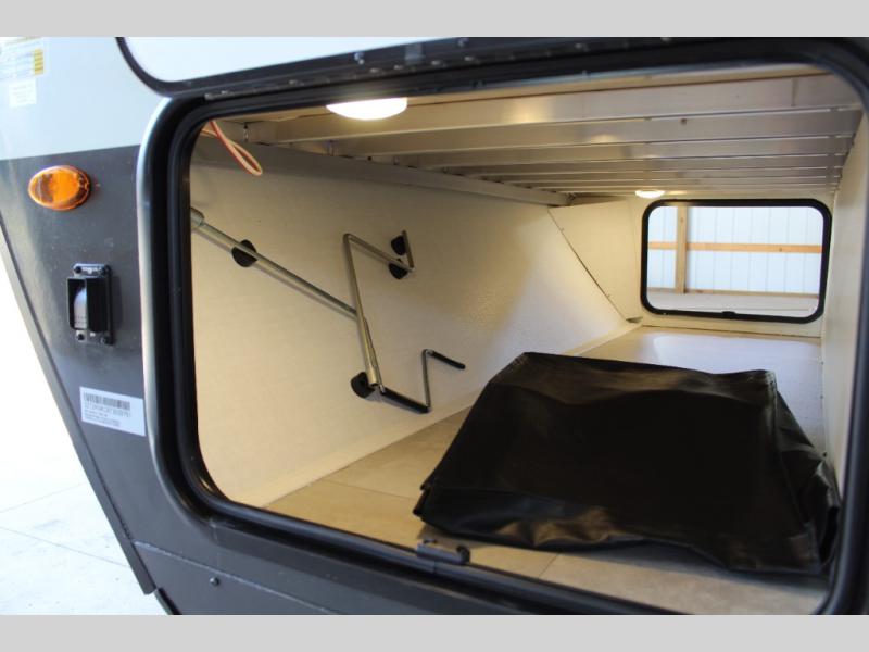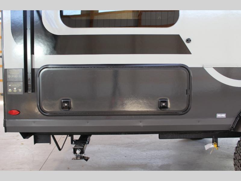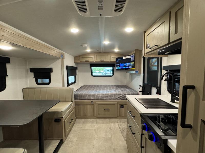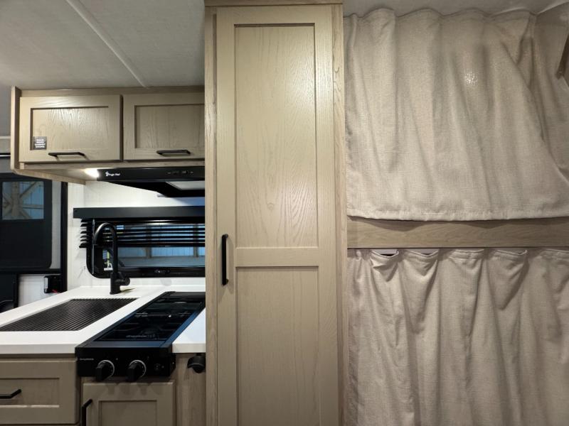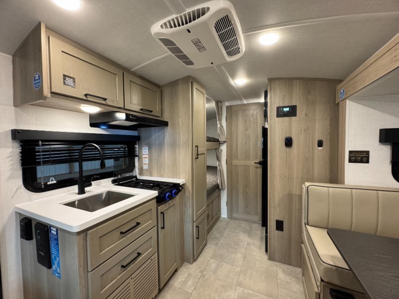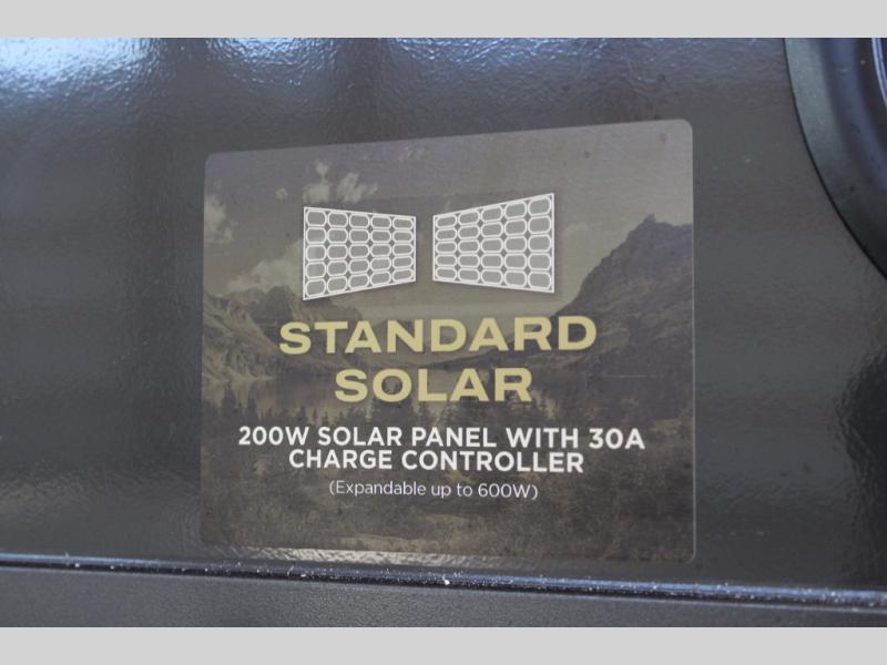 You're going to love camping with your family or friends in this spacious bunk model! The bunk beds will be perfect for little ones, while you take the front full-size bed. There is also a 44" booth dinette within the slide out for additional sleeping and seating space. The kitchen includes everything the chef will need to prepare meals each day, including a recessed cooktop, microwave oven, and a 12V refrigerator for perishables. If the weather is nice, you may just find the chef outdoors cooking on the outside griddle under the 14' power awning. And check out the exterior bike door that will be perfect for bikes, luggage, or extra camp gear. The optional Power Package available on this model includes three 200W solar panels, a 460 Ah Mastervolt MLI lithium-ion battery, two smart remotes, and more off-grid features!