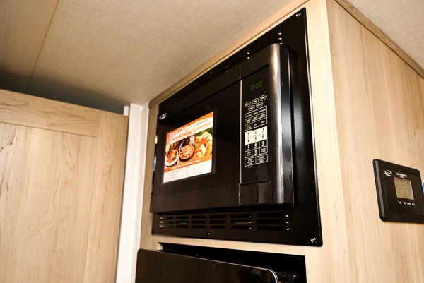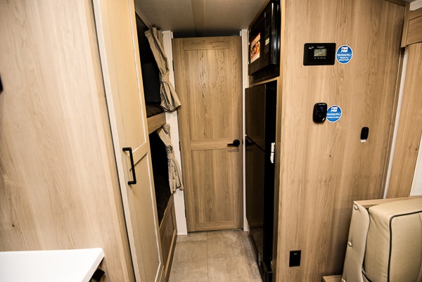 You're going to love camping with your family or friends in this spacious bunk model! The bunk beds will be perfect for little ones, while you take the front full-size bed. There is also a 44" booth dinette within the slide out for additional sleeping and seating space. The kitchen includes everything the chef will need to prepare meals each day, including a recessed cooktop, microwave oven, and a 12V refrigerator for perishables. If the weather is nice, you may just find the chef outdoors cooking on the outside griddle under the 14' power awning. And check out the exterior bike door that will be perfect for bikes, luggage, or extra camp gear. The optional Power Package available on this model includes three 200W solar panels, a 460 Ah Mastervolt MLI lithium-ion battery, two smart remotes, and more off-grid features!