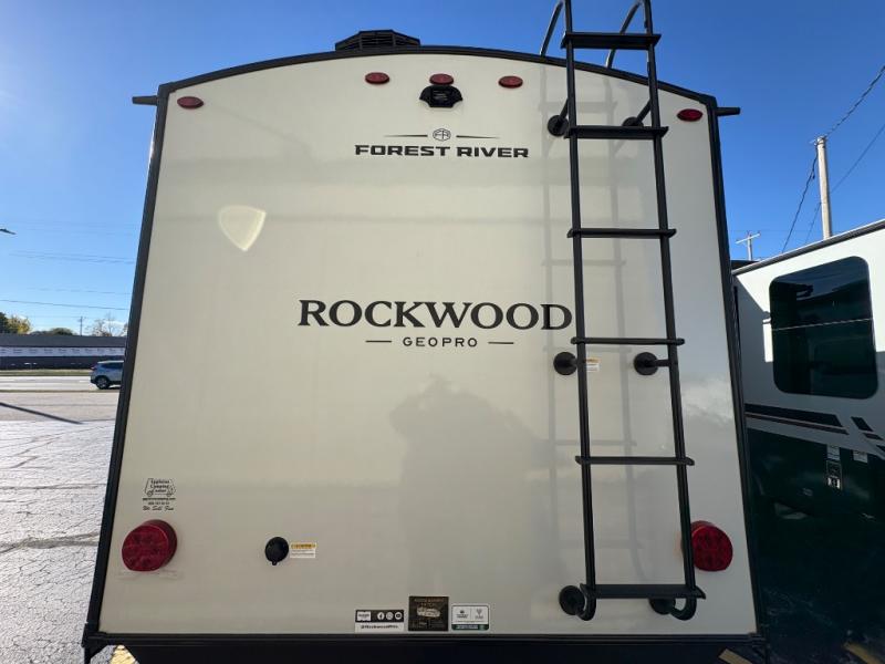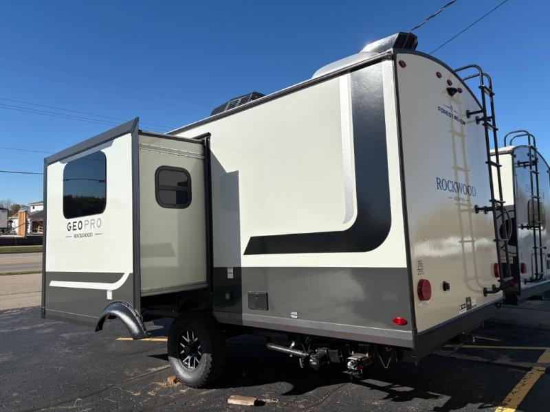 With any Rockwood GEO Pro travel trailer by Forest River you will enjoy easy towing, durable construction, and off-road capabilities with larger laminated roof! Each model is constructed with complete composite wall construction for added strength and durability, and Dexter® axles that will make towing easier than ever. Inside, you'll find sleek back up camera prep for added security, a refrigerator and a microwave, plus many other interior amenities that will make you feel at home on the road.