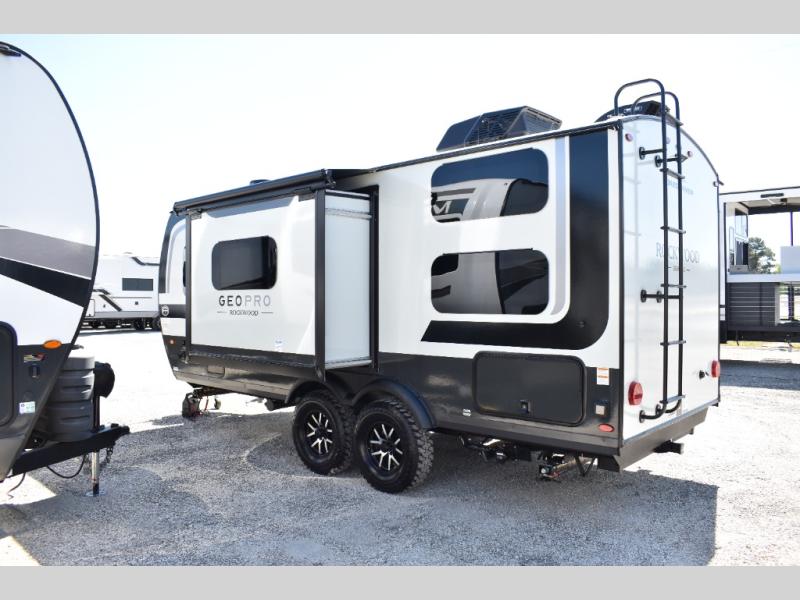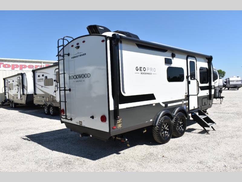 With any Rockwood GEO Pro travel trailer by Forest River you will enjoy easy towing, durable construction, and off-road capabilities with larger laminated roof! Each model is constructed with complete composite wall construction for added strength and durability, and Dexter® axles that will make towing easier than ever. Inside, you'll find sleek back up camera prep for added security, a refrigerator and a microwave, plus many other interior amenities that will make you feel at home on the road.