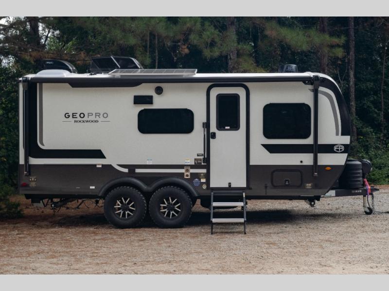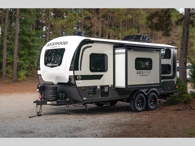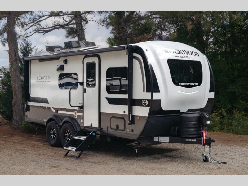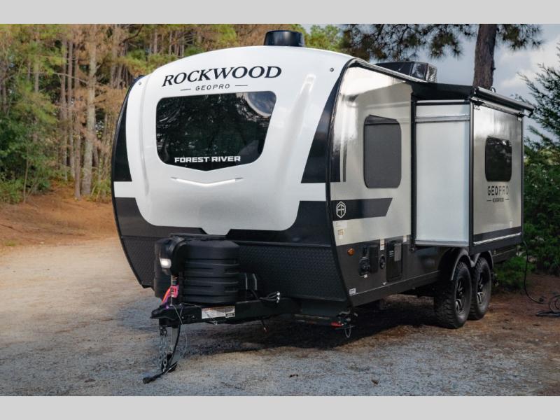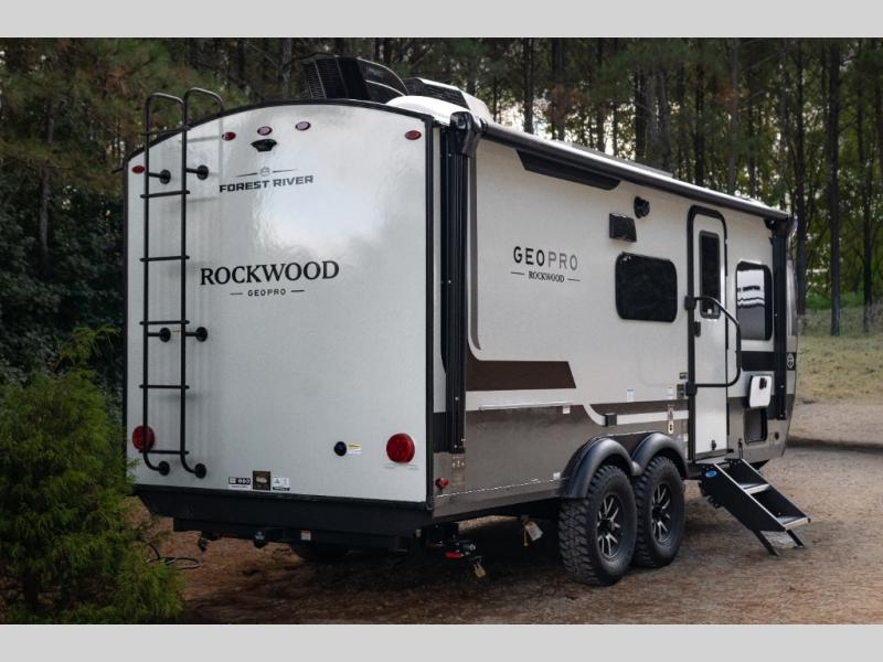 With any Rockwood GEO Pro travel trailer by Forest River you will enjoy easy towing, durable construction, and off-road capabilities with larger laminated roof! Each model is constructed with complete composite wall construction for added strength and durability, and Dexter® axles that will make towing easier than ever. Inside, you'll find sleek back up camera prep for added security, a refrigerator and a microwave, plus many other interior amenities that will make you feel at home on the road.