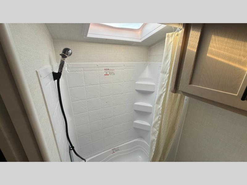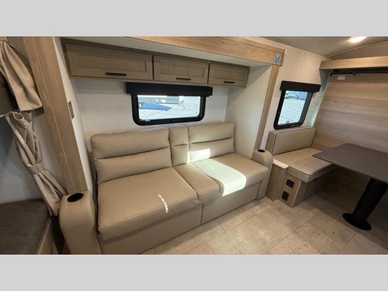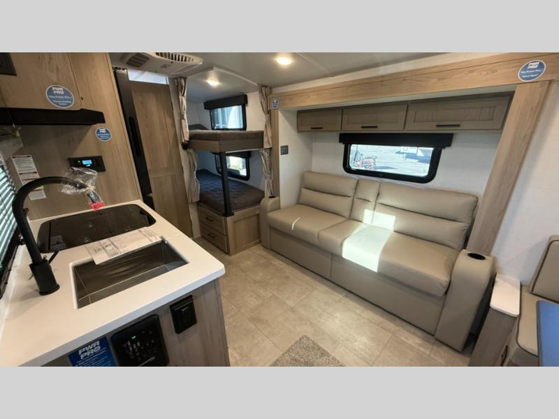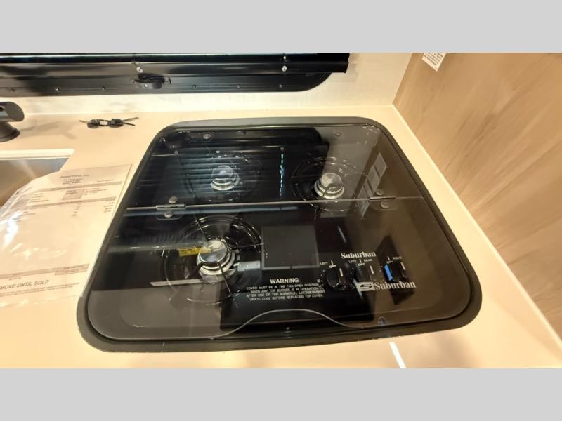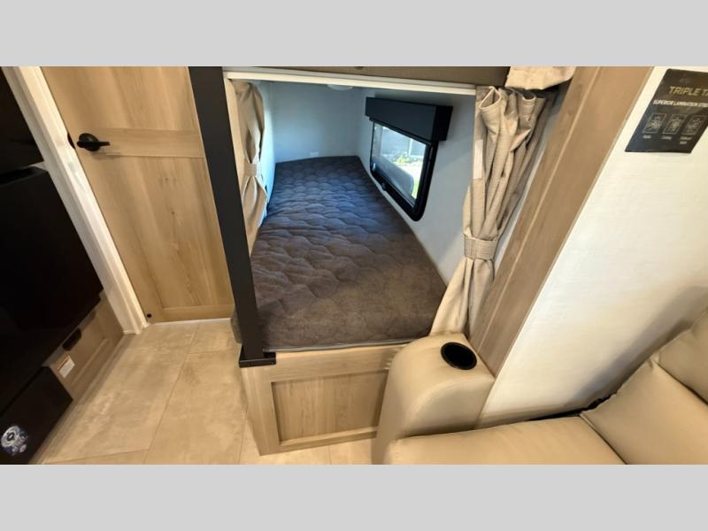 Perfect for families, couples, or friends, this trailer offers a great balance of comfort and practicality! Sleeping spots can be found in the bunk beds, which provide a cozy sleeping spot for kids or guests, while the 54” x 74” Murphy bed offers a spacious and comfortable sleeping area for two. Moreover, the kitchen is equipped with a three-burner cooktop for gourmet meals, a convection microwave for quick and easy cooking, and a fridge. The 39” dinette provides a comfortable spot for meals and snacks, perfect for enjoying quality time with family and friends. The 30" x 15" table provides additional space for dining, working, or playing games, and the sofa provides a comfortable seating area for relaxation and socializing, plus, the full bathroom provides a convenient spot to freshen up after a long day of exploring.