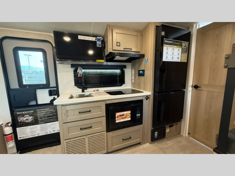 With any Rockwood GEO Pro travel trailer by Forest River you will enjoy easy towing, durable construction, and off-road capabilities with larger laminated roof! Each model is constructed with complete composite wall construction for added strength and durability, and Dexter® axles that will make towing easier than ever. Inside, you'll find sleek back up camera prep for added security, a refrigerator and a microwave, plus many other interior amenities that will make you feel at home on the road.