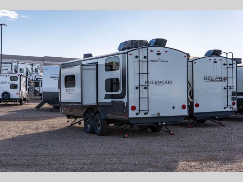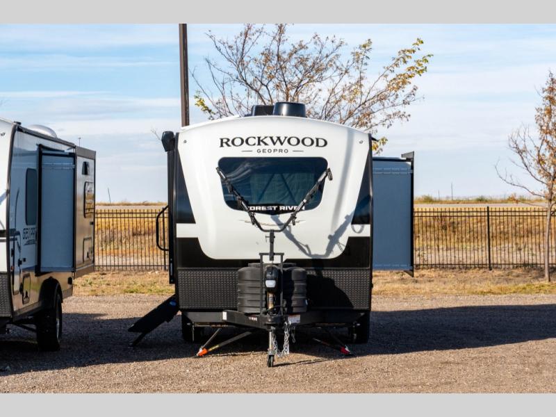 With any Rockwood GEO Pro travel trailer by Forest River you will enjoy easy towing, durable construction, and off-road capabilities with larger laminated roof! Each model is constructed with complete composite wall construction for added strength and durability, and Dexter® axles that will make towing easier than ever. Inside, you'll find sleek back up camera prep for added security, a refrigerator and a microwave, plus many other interior amenities that will make you feel at home on the road.