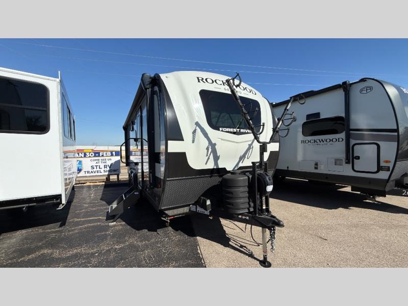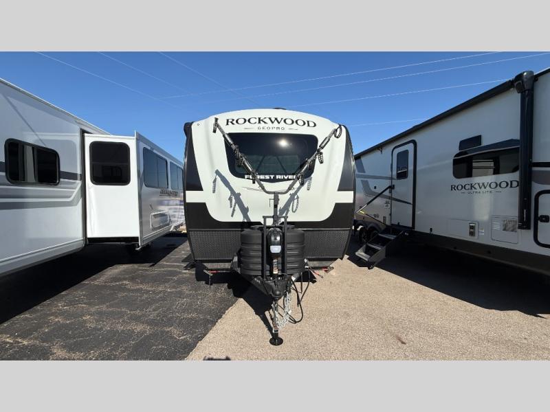 With any Rockwood GEO Pro travel trailer by Forest River you will enjoy easy towing, durable construction, and off-road capabilities with a fully laminated roof! Each model is constructed with complete composite wall construction for added strength and durability, and Dexter® axles that will make towing easier than ever. Inside, you'll find sleek back up camera prep for added security, a refrigerator and a microwave, plus many other interior amenities that will make you feel at home on the road.